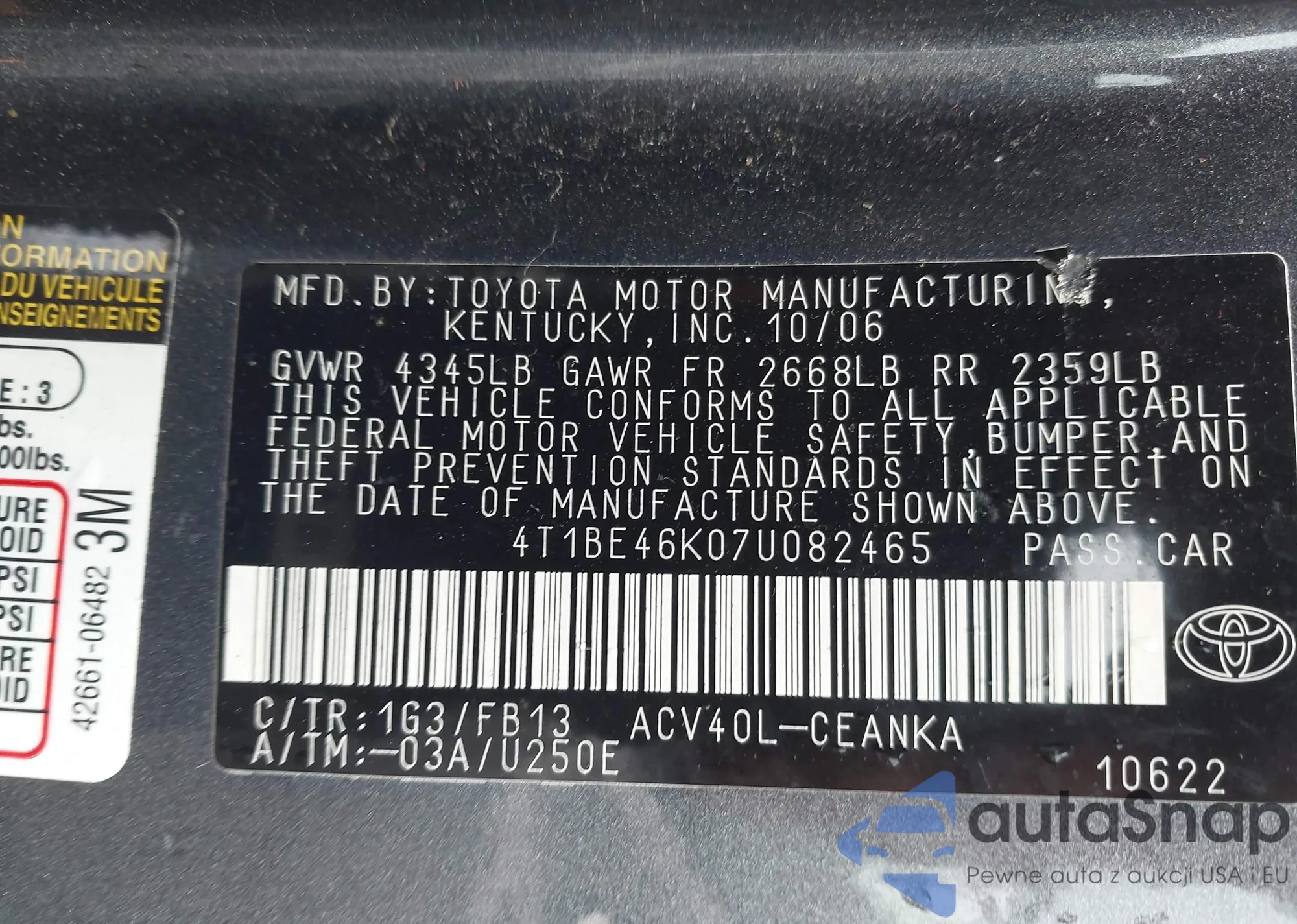 • VIN 4T1BE46K07U082465
