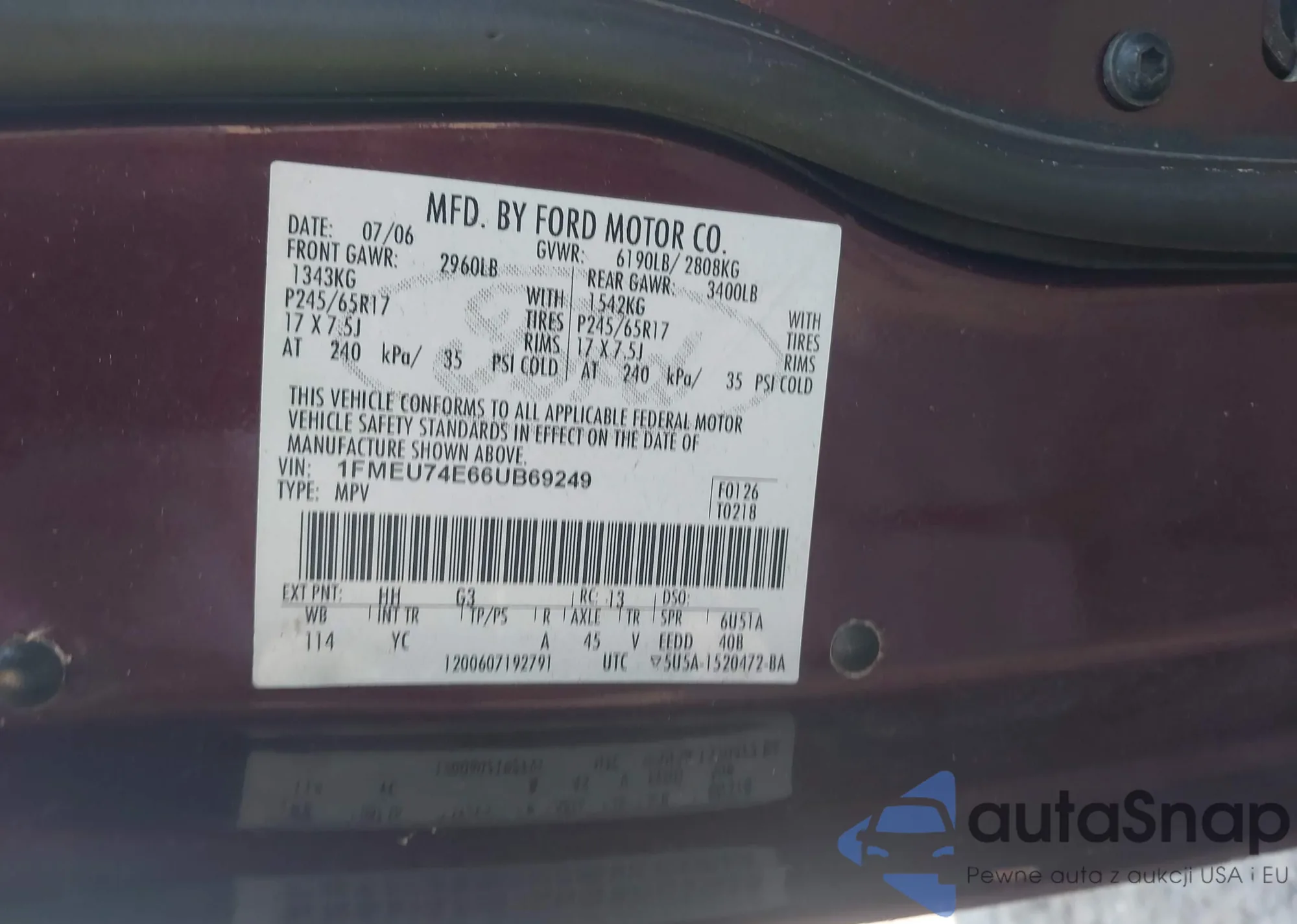 LOT: 42529265 VIN: 1FMYU93126KC94204