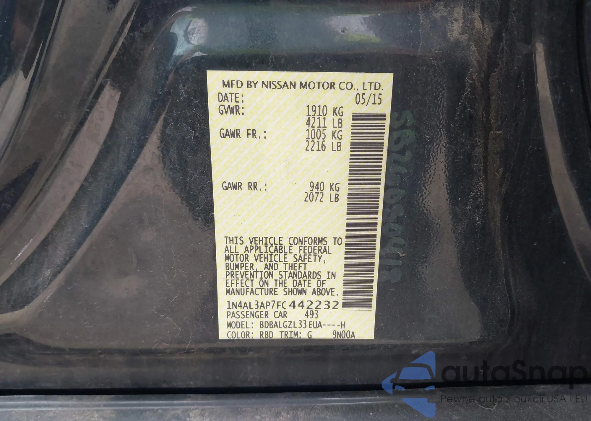 • VIN 1N4AL3AP7FC442232