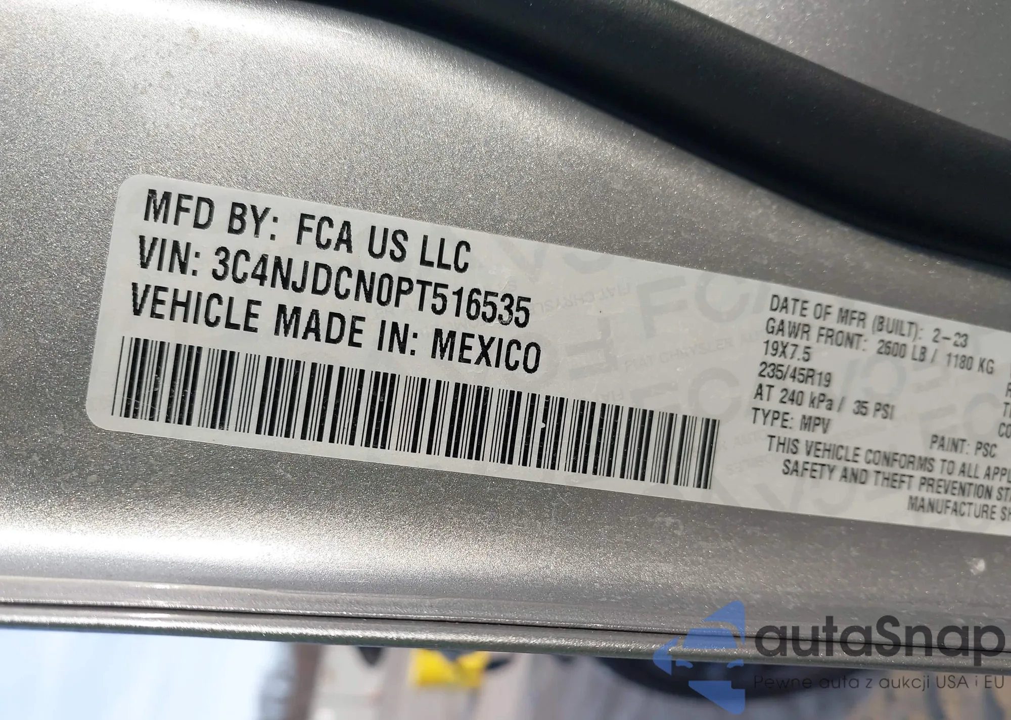• VIN 3C4NJDCN0PT516535