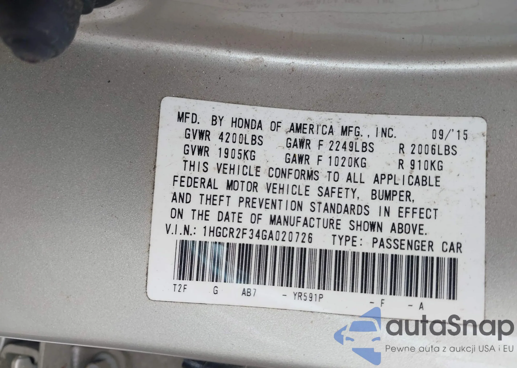 • VIN 1HGCR2F34GA020726