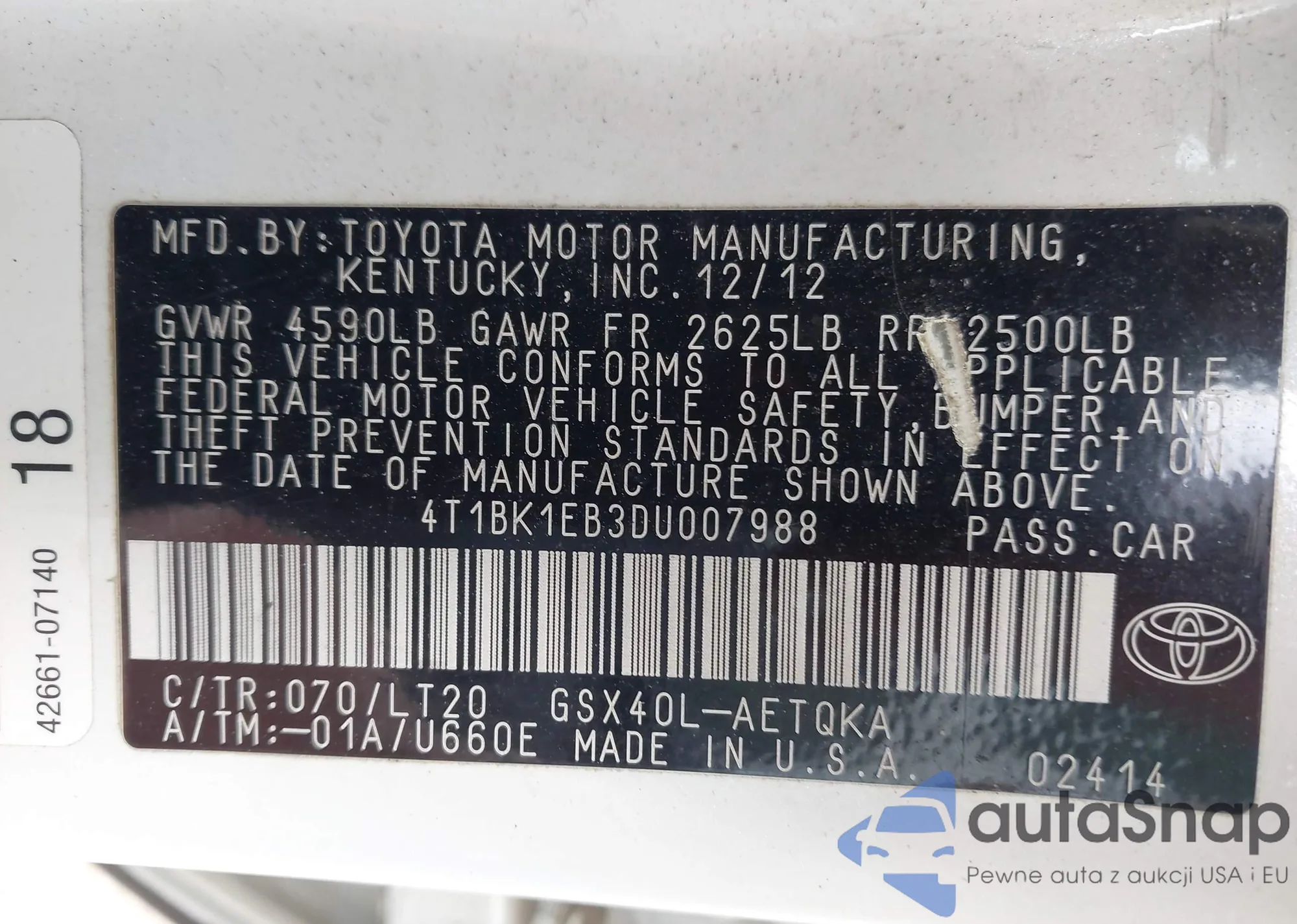 LOT: 42204092 VIN: 4T1B11HK0JU097935
