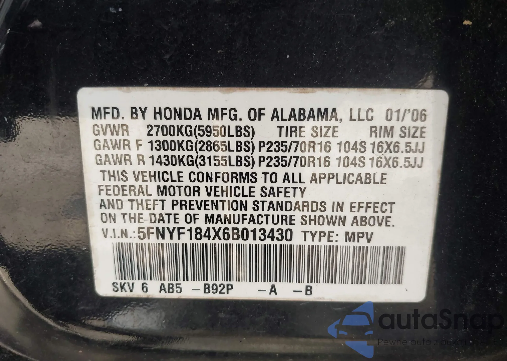 • VIN 5FPYK3F14RB012334