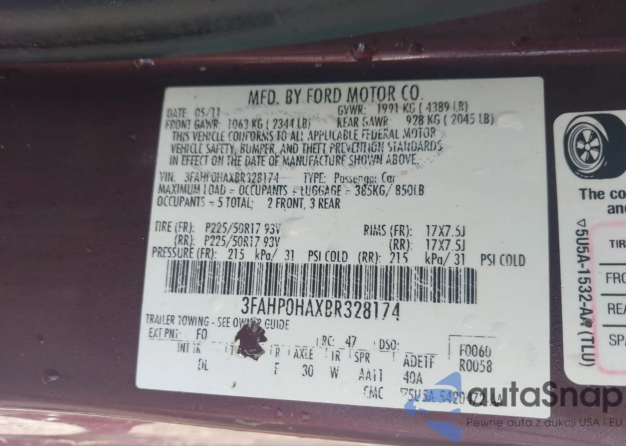 LOT: 42528899 VIN: 3FAHP0HAXBR328174