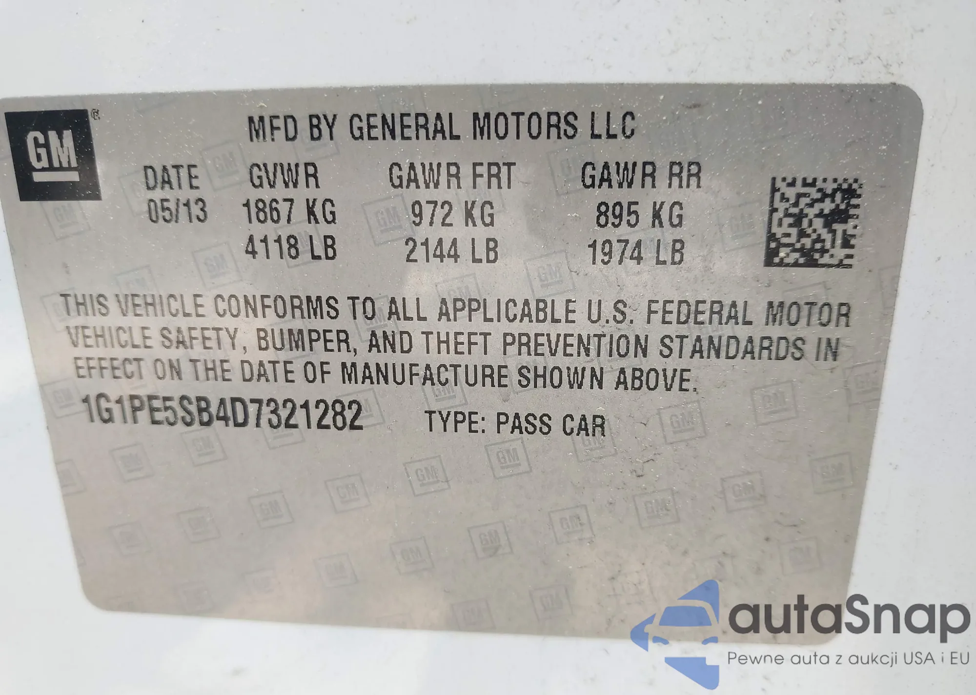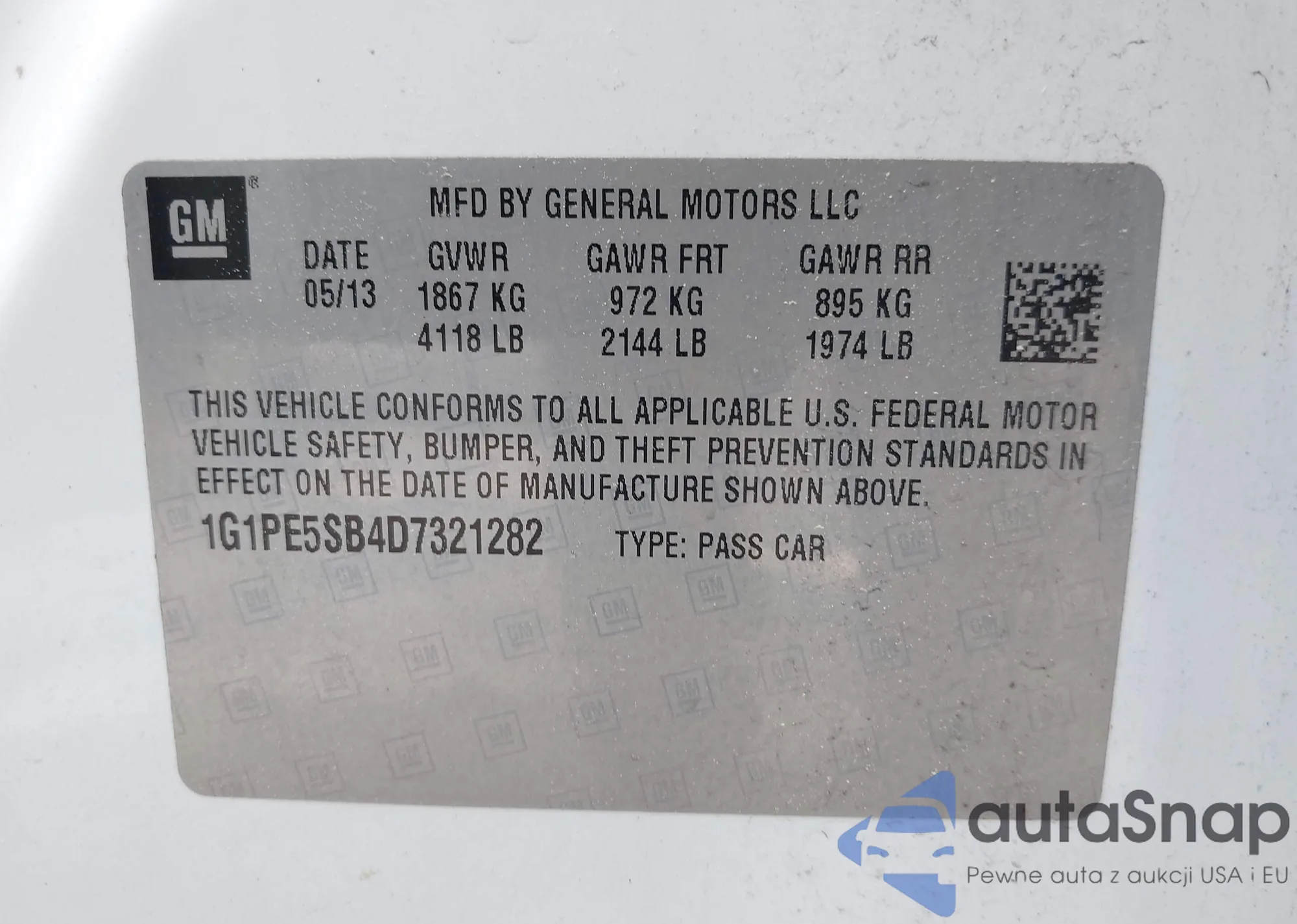 LOT: 42389200 VIN: 1G1PE5SB4D7321282