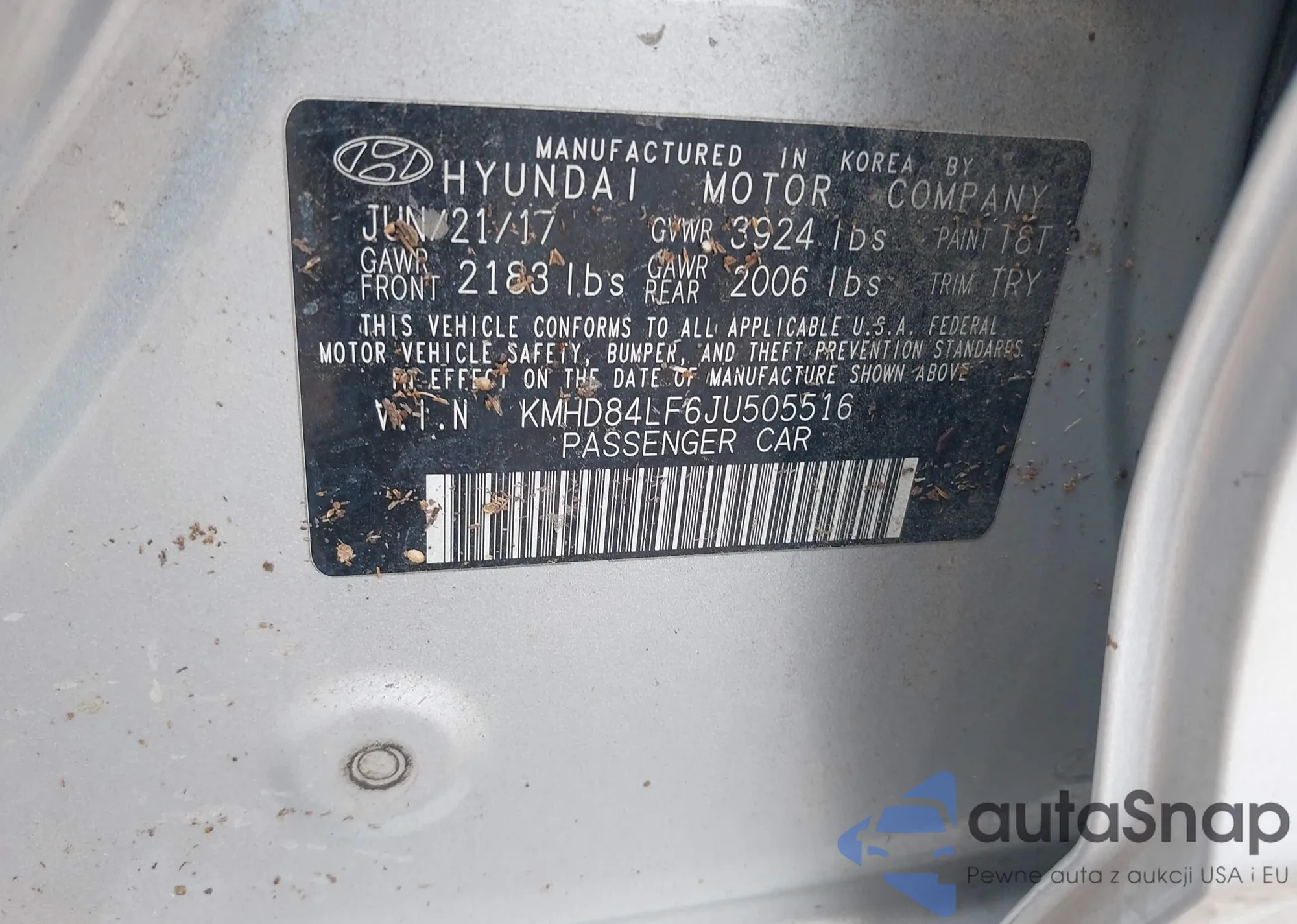 • VIN KMHD84LF6JU505516
