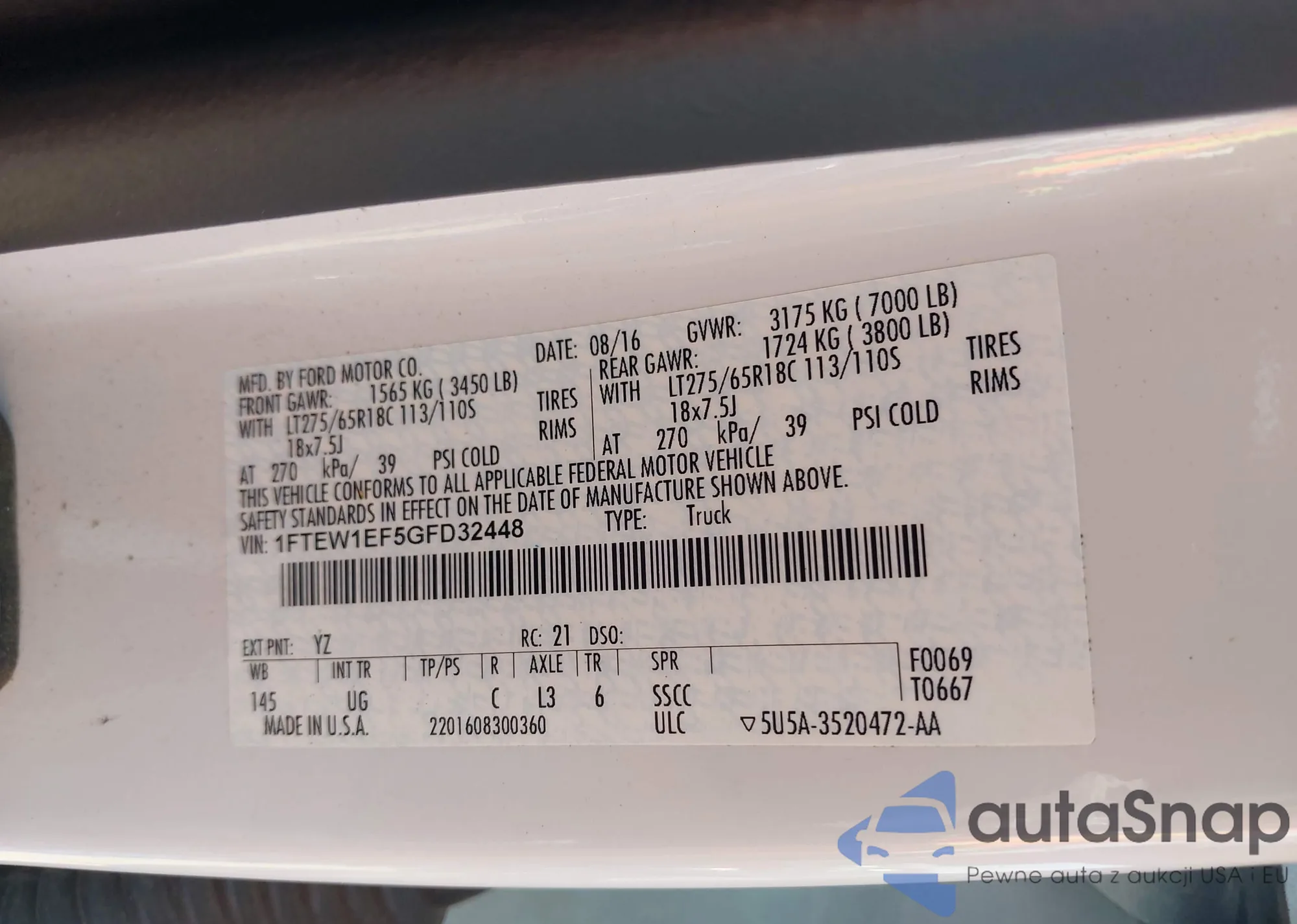 LOT: 42411577 VIN: 1FTEW1EF5GFD32448