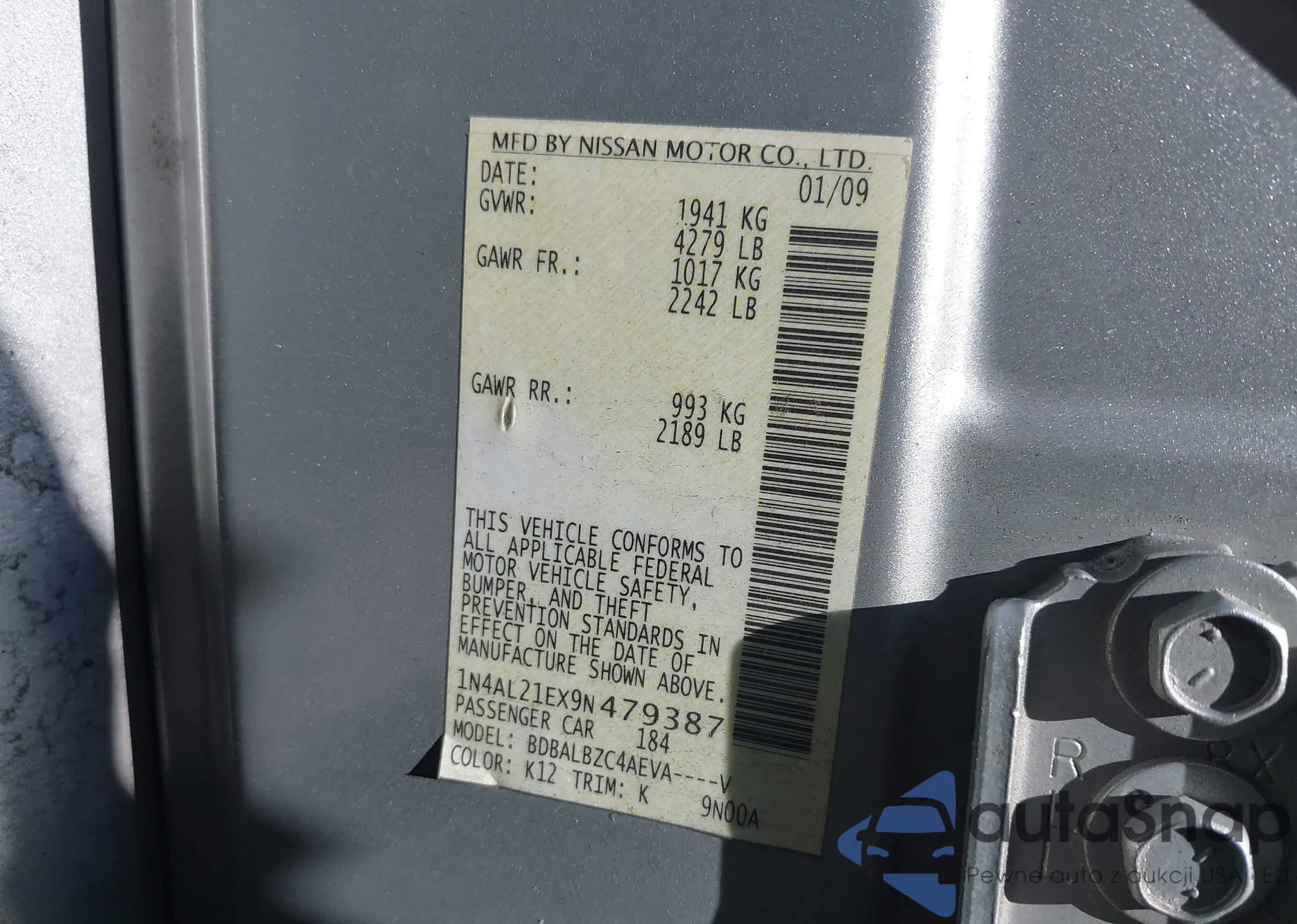 LOT: 42408729 VIN: JN8AZ18W39W120611