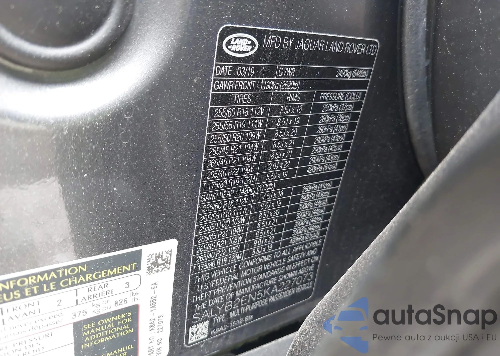 • VIN SALYB2EN5KA227073