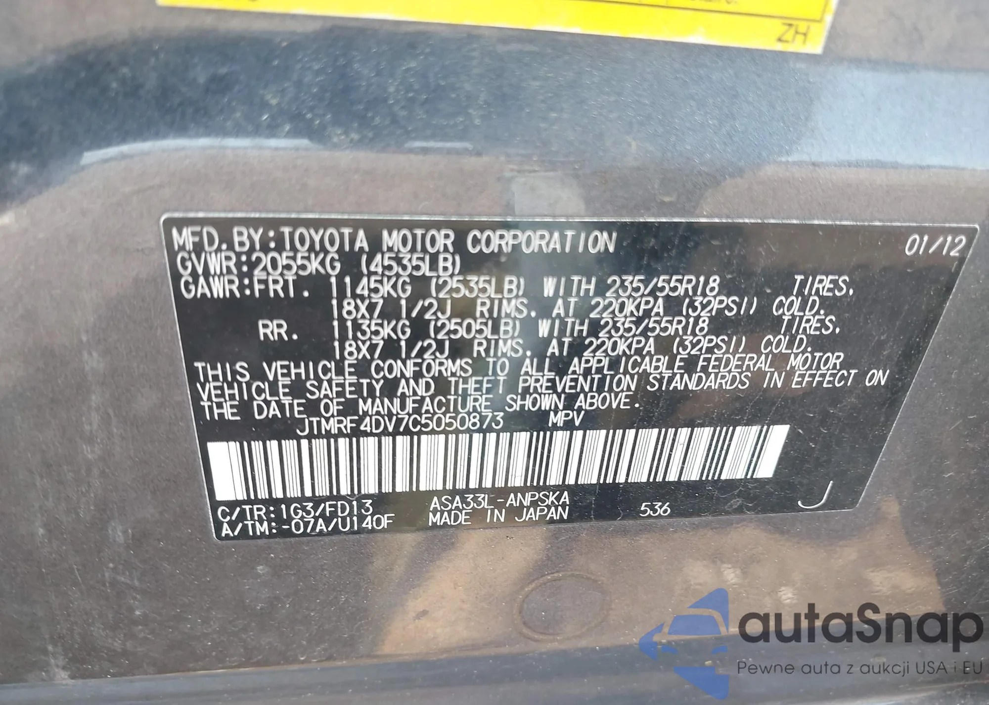 LOT: 42622553 VIN: 4T1BF1FK5GU188485