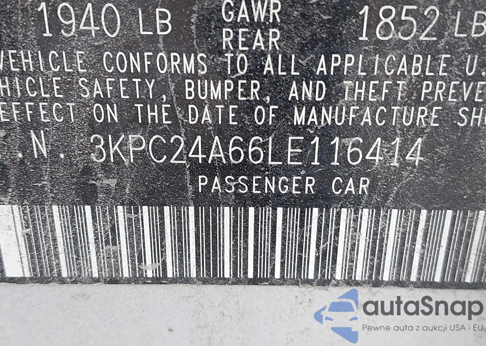 • VIN 3KPC24A66LE116414