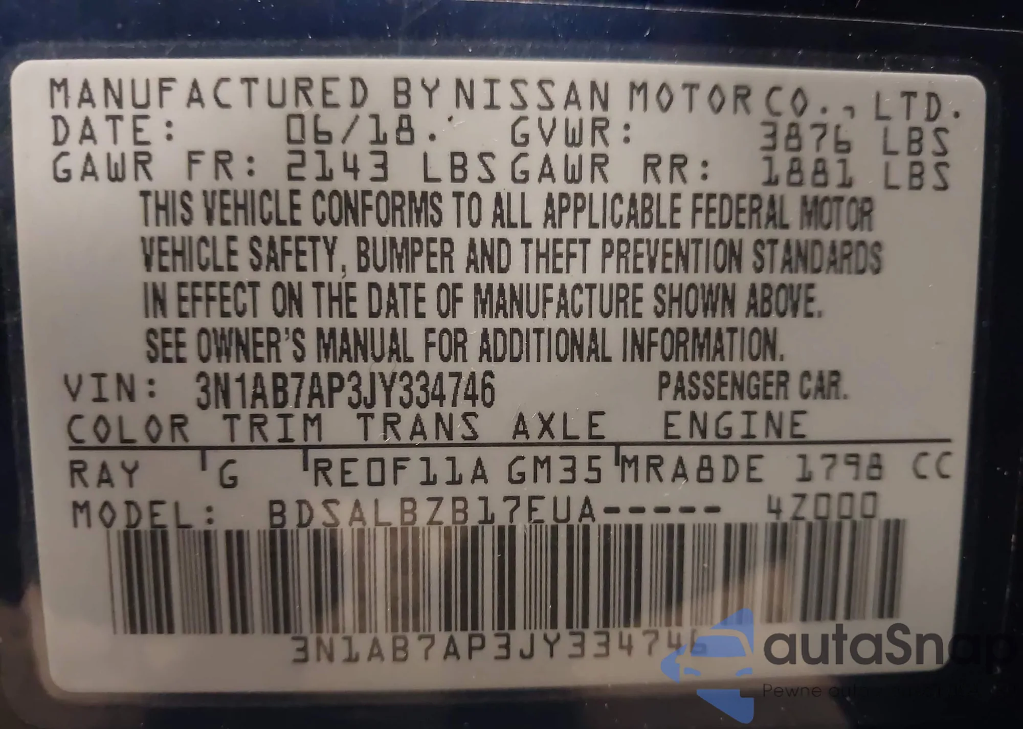 • VIN 3N1AB8DVXRY296895
