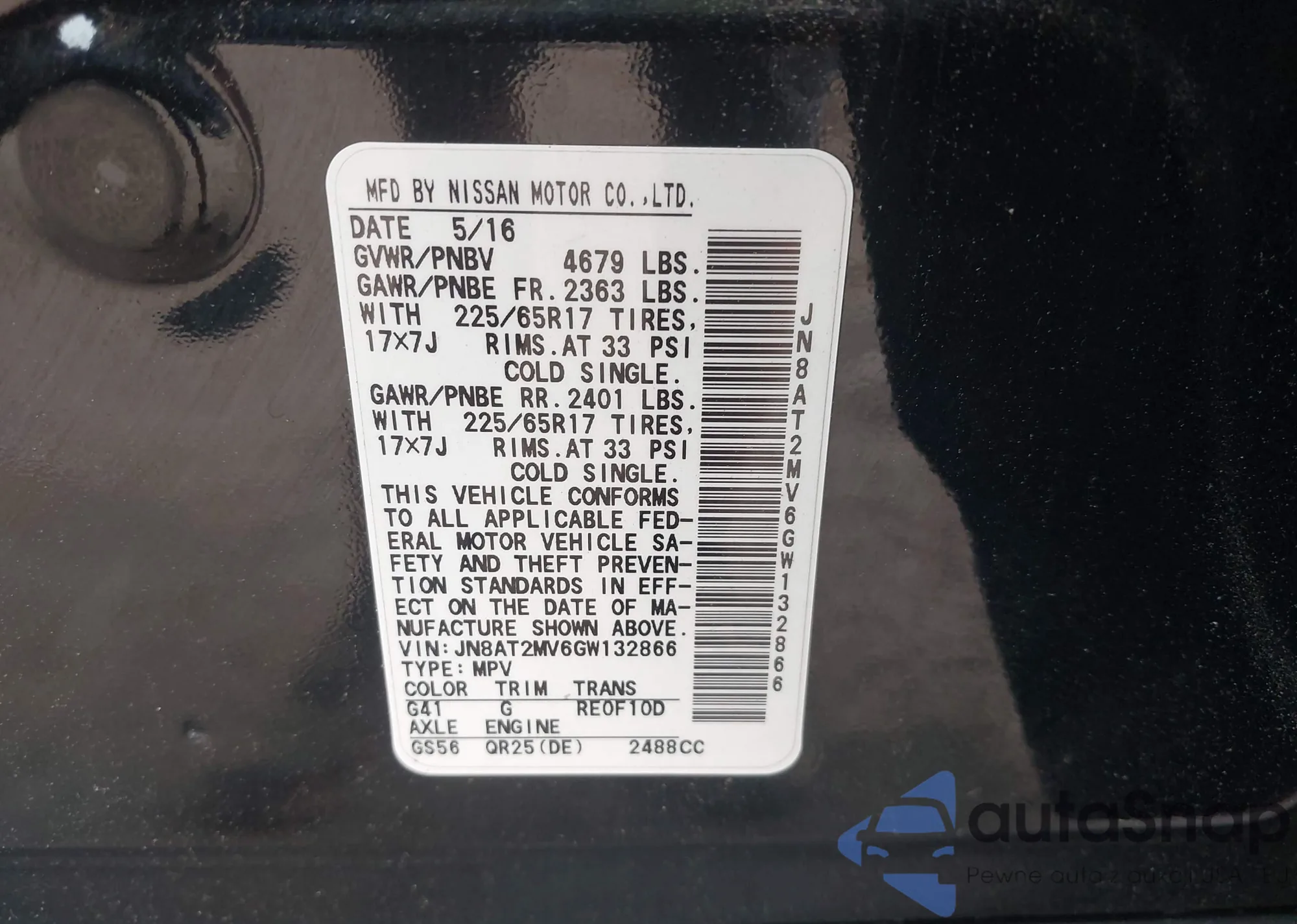 LOT: 42240805 VIN: 5N1AR2MM4GC635388
