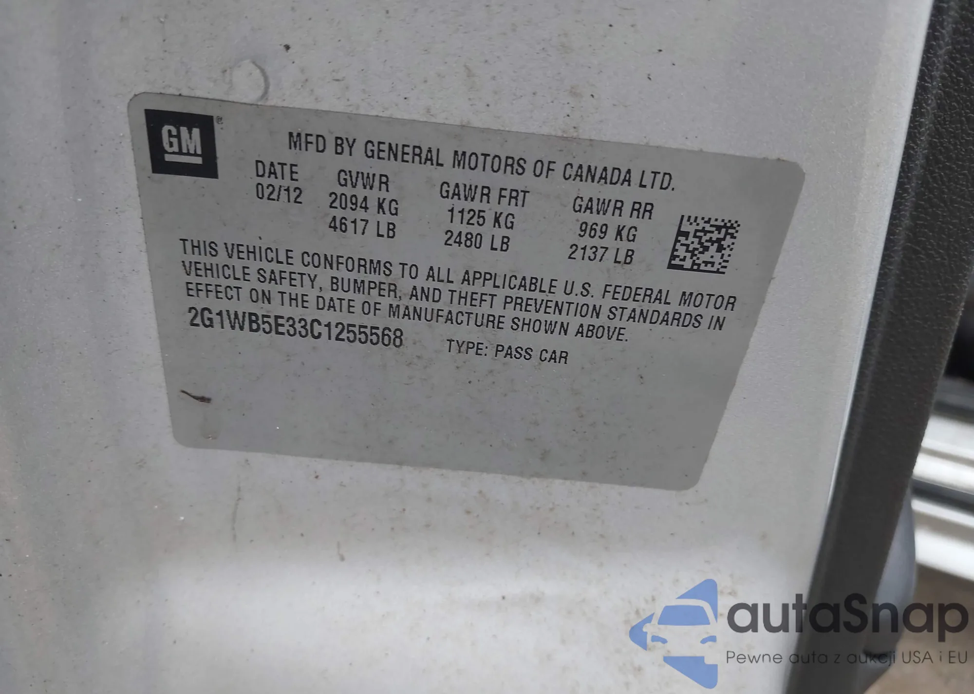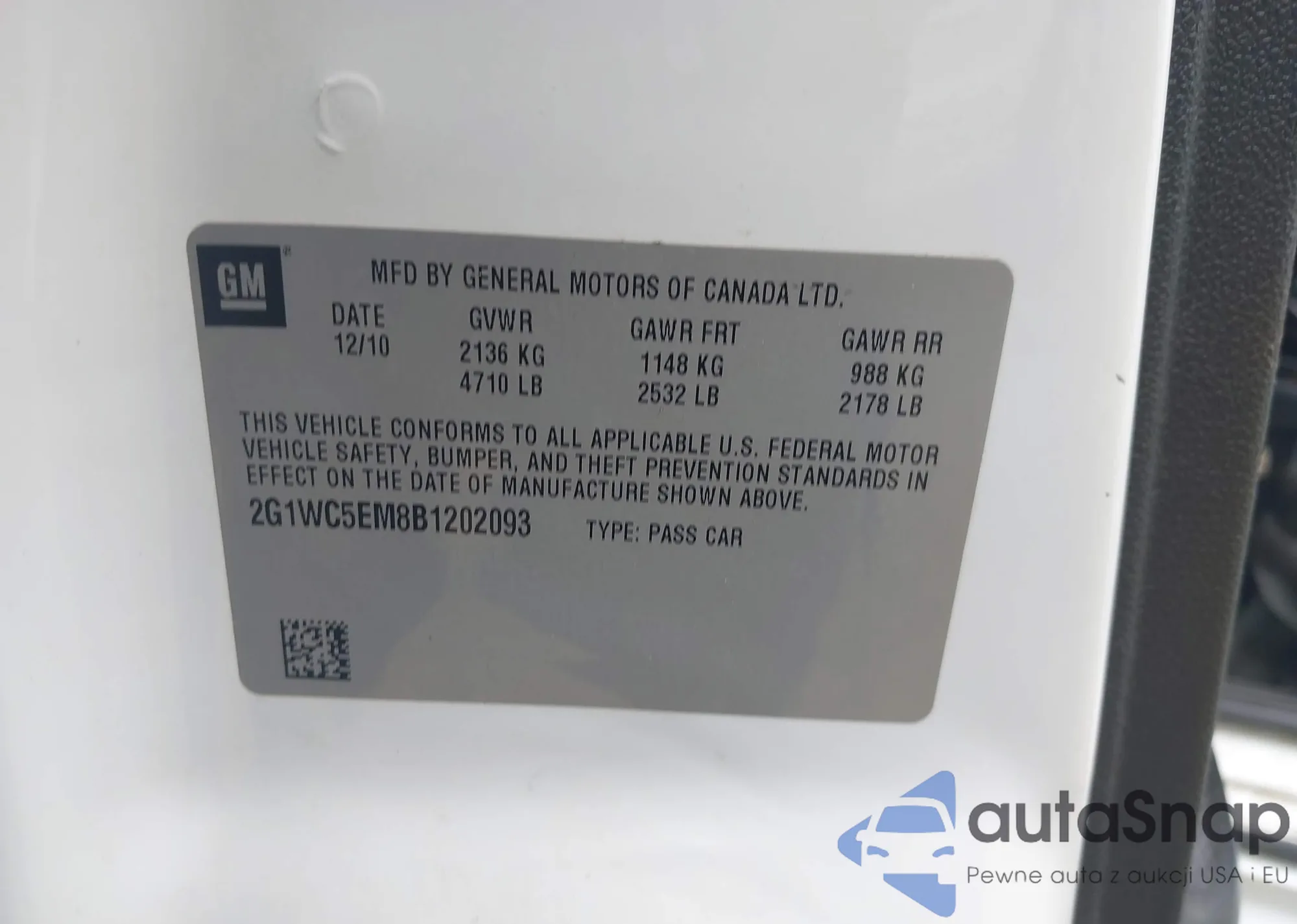 • VIN 2G1WC5EM8B1202093