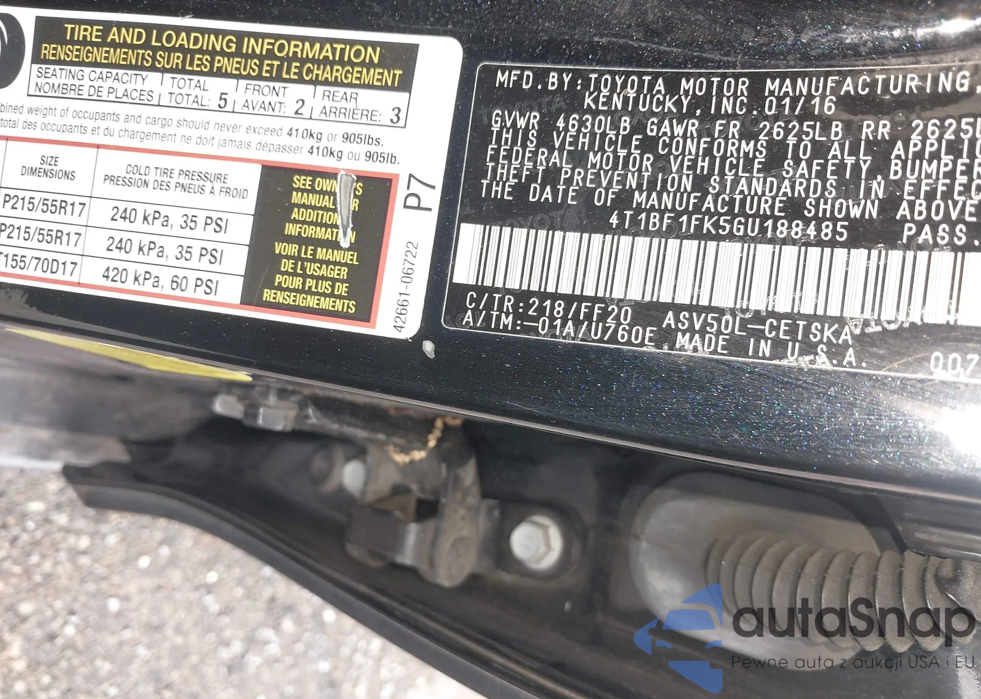 • VIN 4T1BF1FK5GU188485