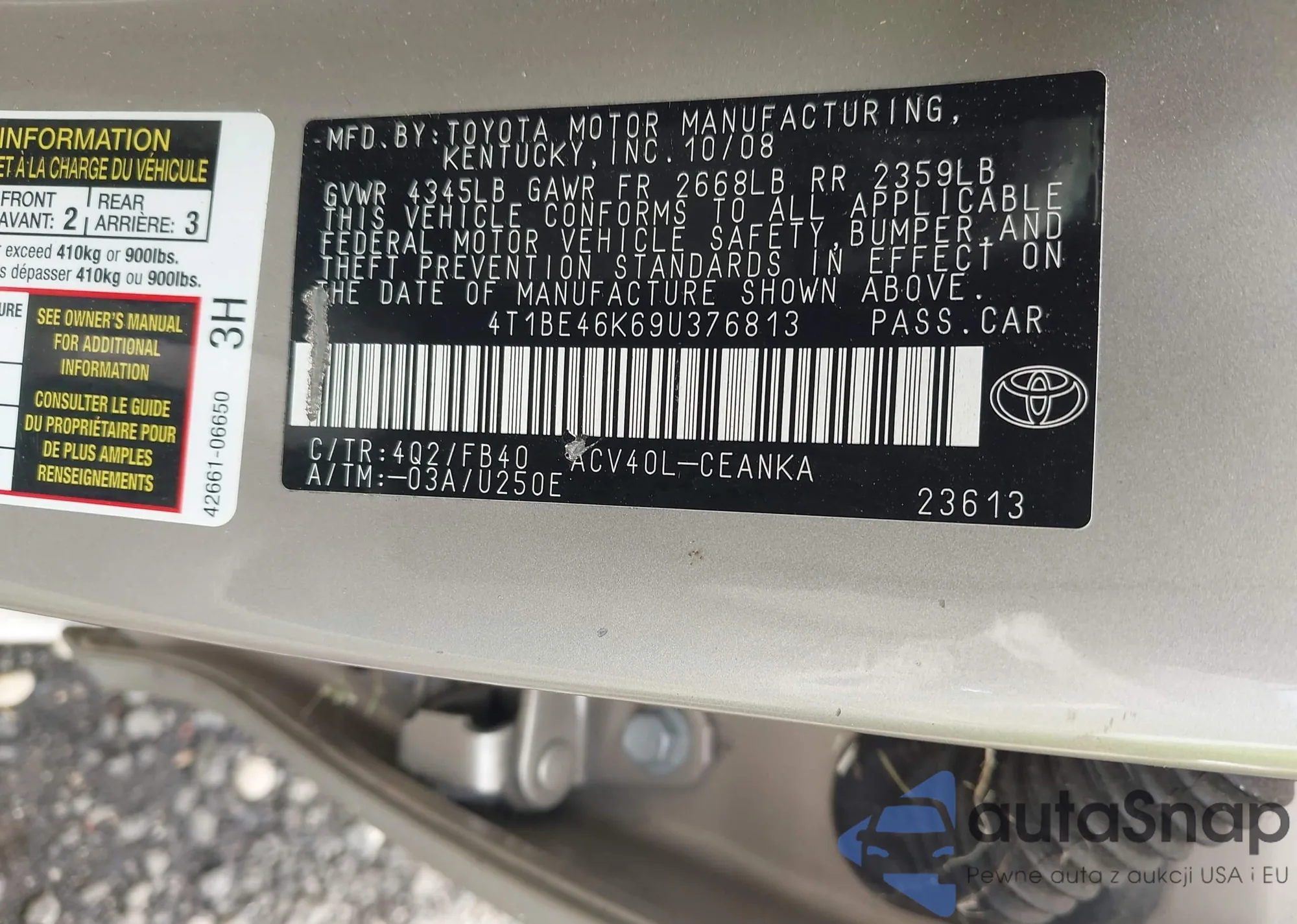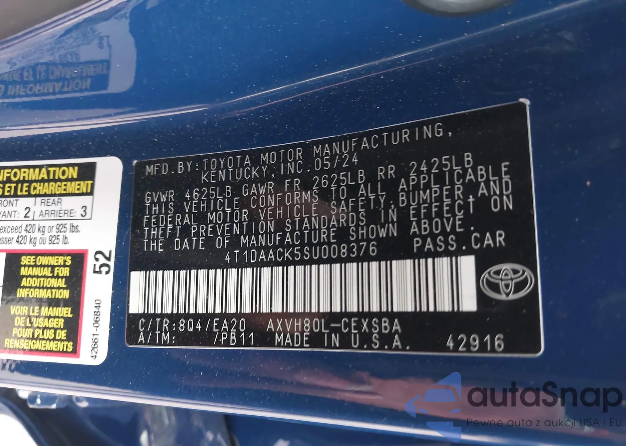• VIN 4T1DAACK5SU008376