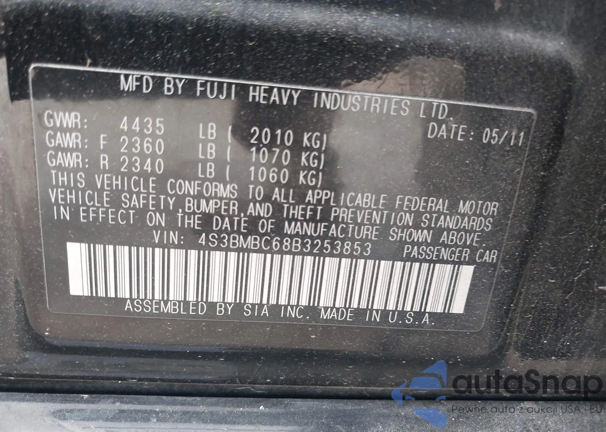 • VIN 4S3BMBC68B3253853
