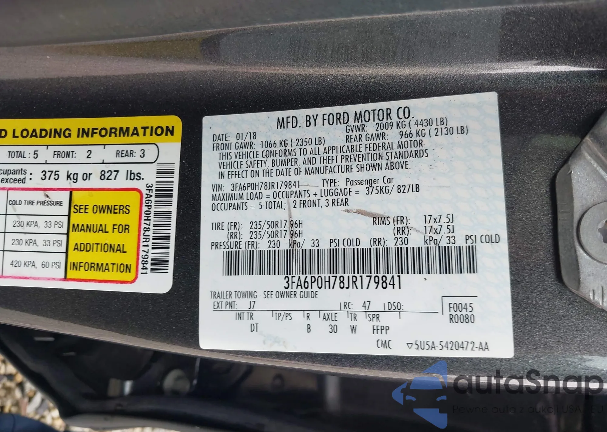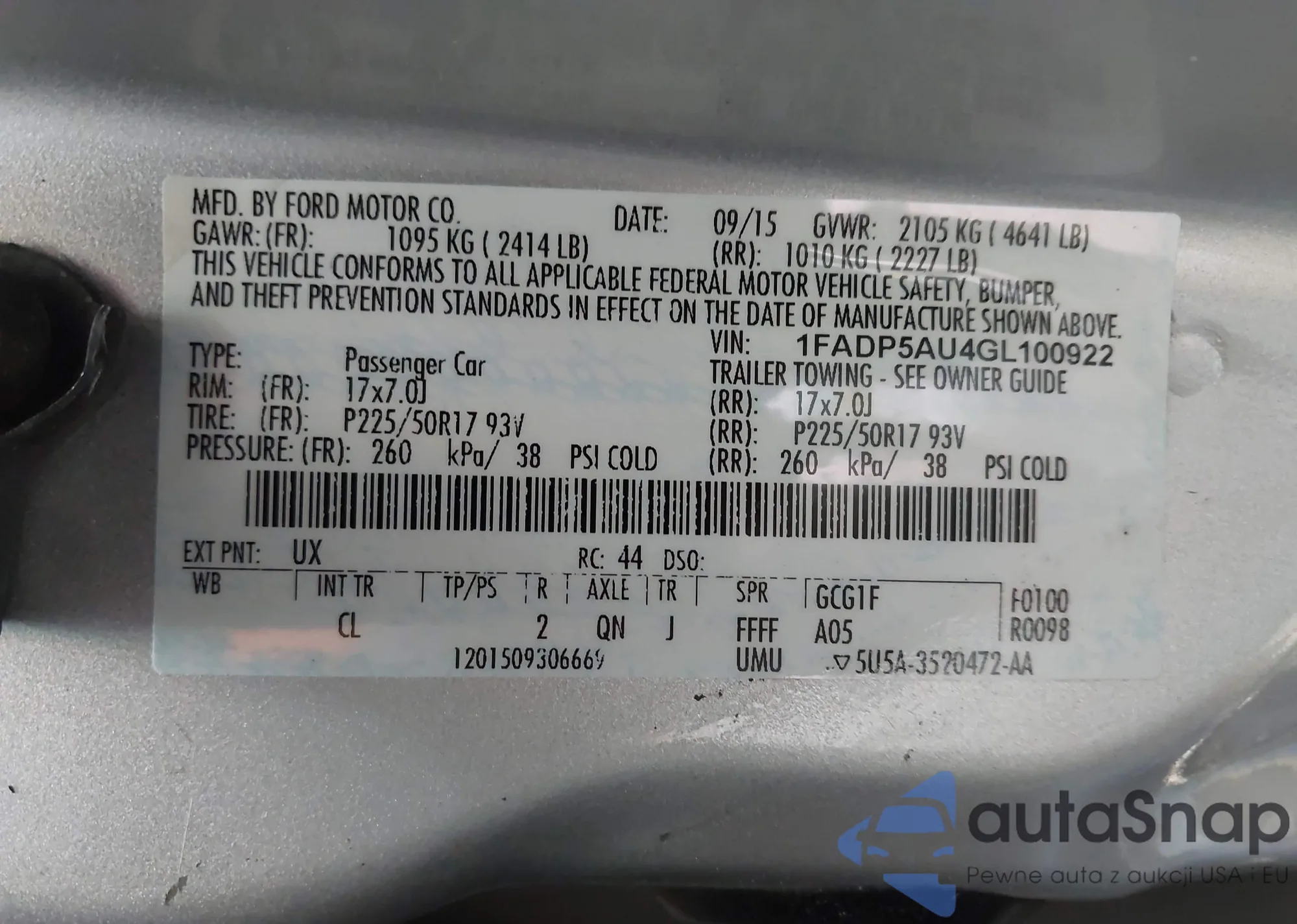 • VIN 1FADP5AU4GL100922