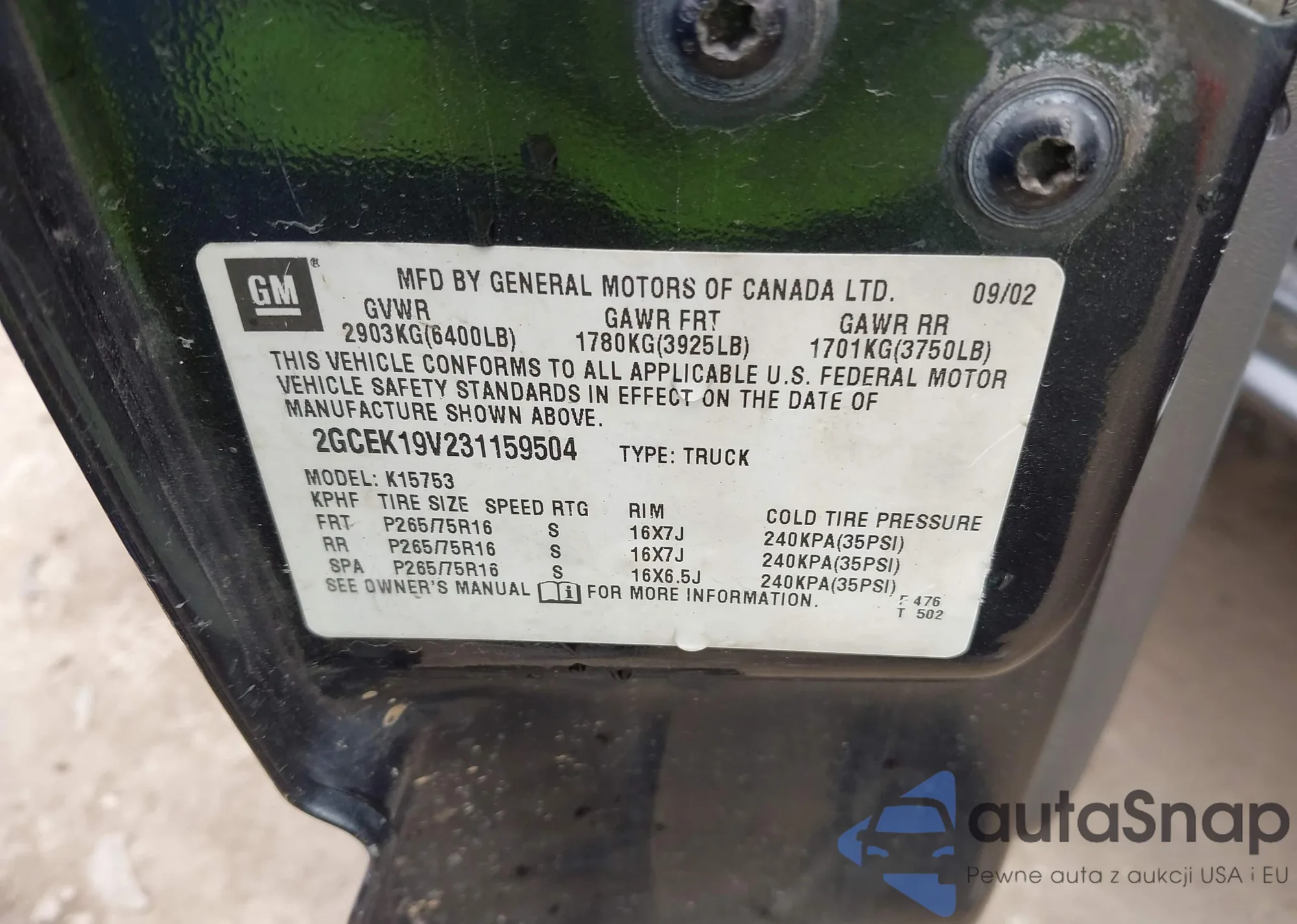 LOT: 42493002 VIN: 2GCEK19V231159504