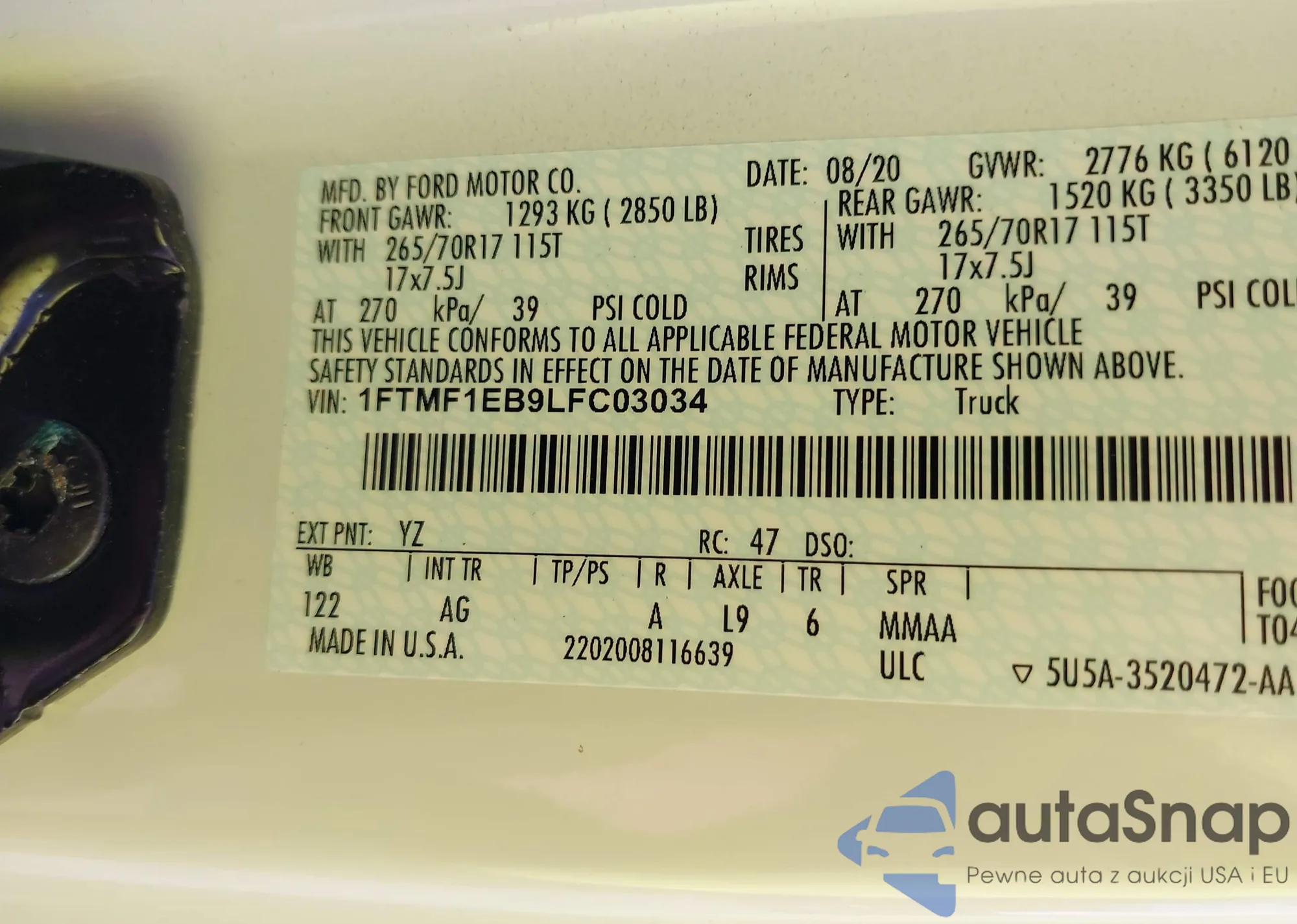 2020 Ford F-150 Xl from USA, damaged, VIN 1FTMF1EB9LFC03034