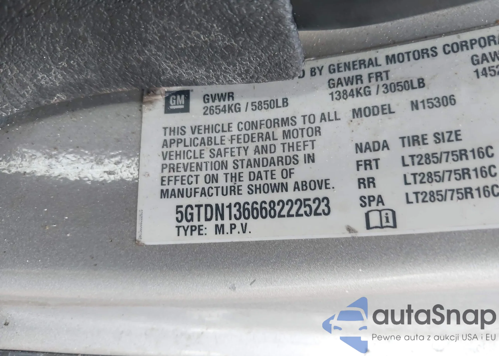 • VIN 5GTDN136668222523