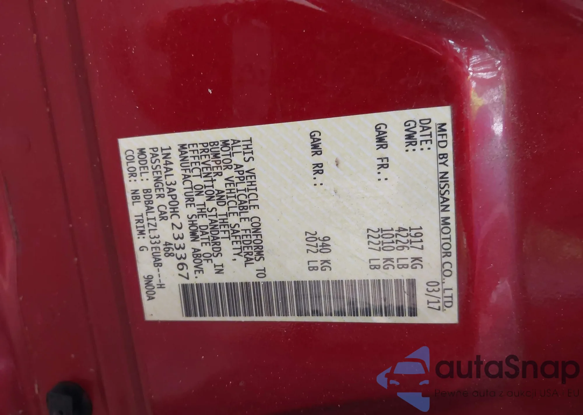 LOT: 42672626 VIN: 1N4AL3AP0HC233367