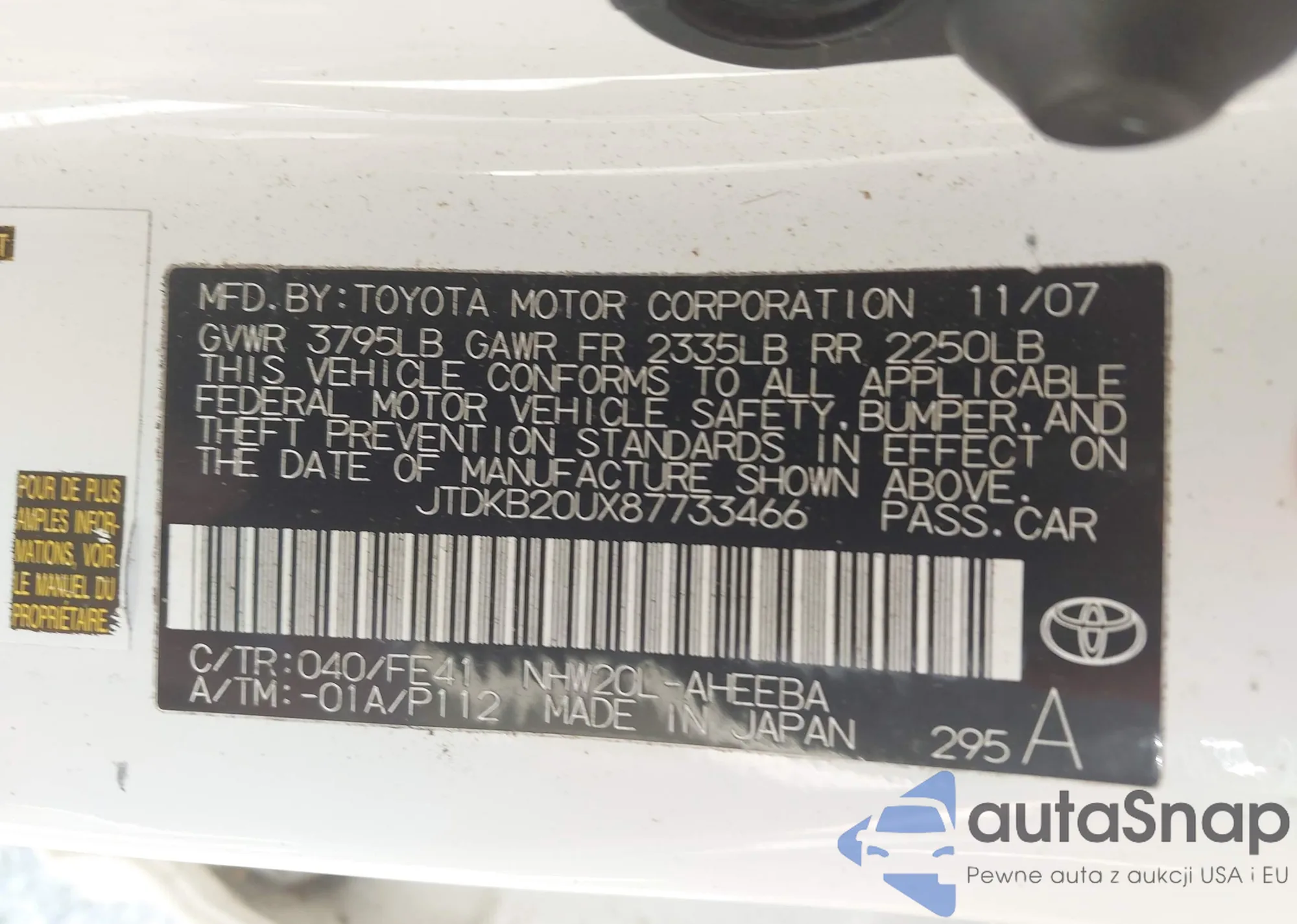 • VIN 4T1BE46K39U874418