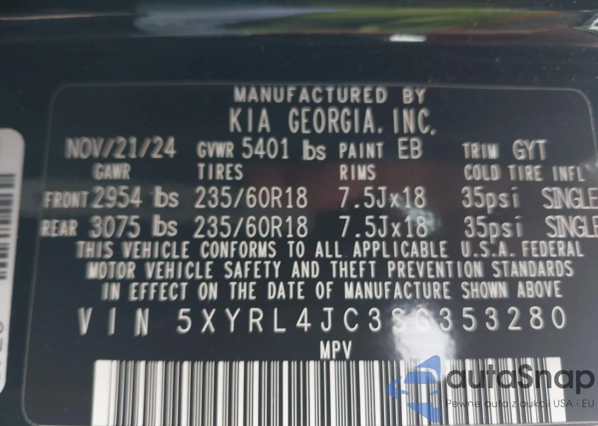 • VIN 5XYRL4JC3SG353280