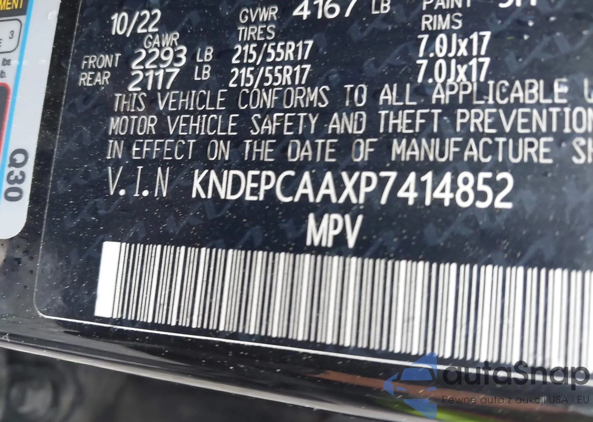 • VIN KNDEPCAAXP7414852