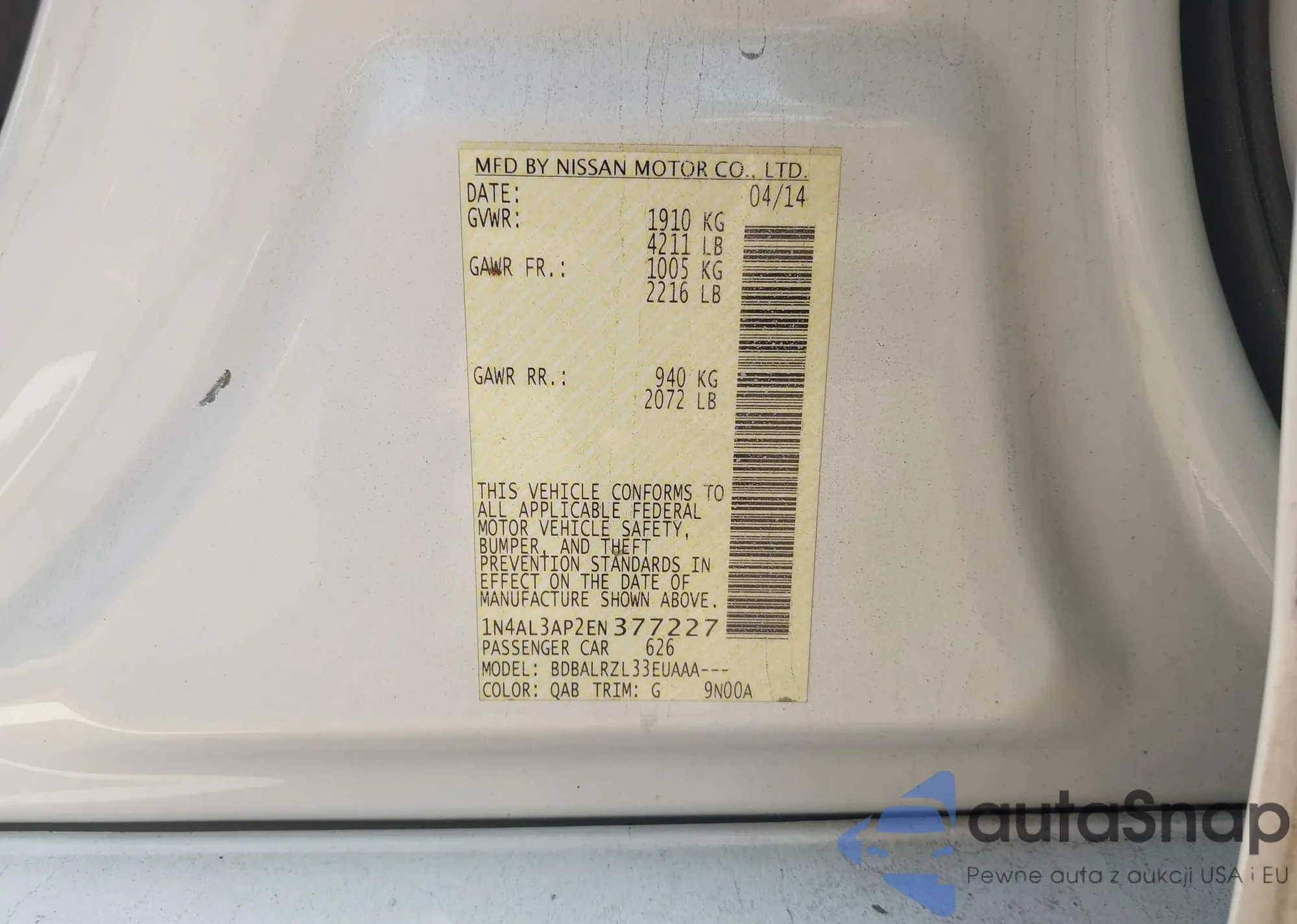 LOT: 42487038 VIN: 1N4AL3AP2EN377227