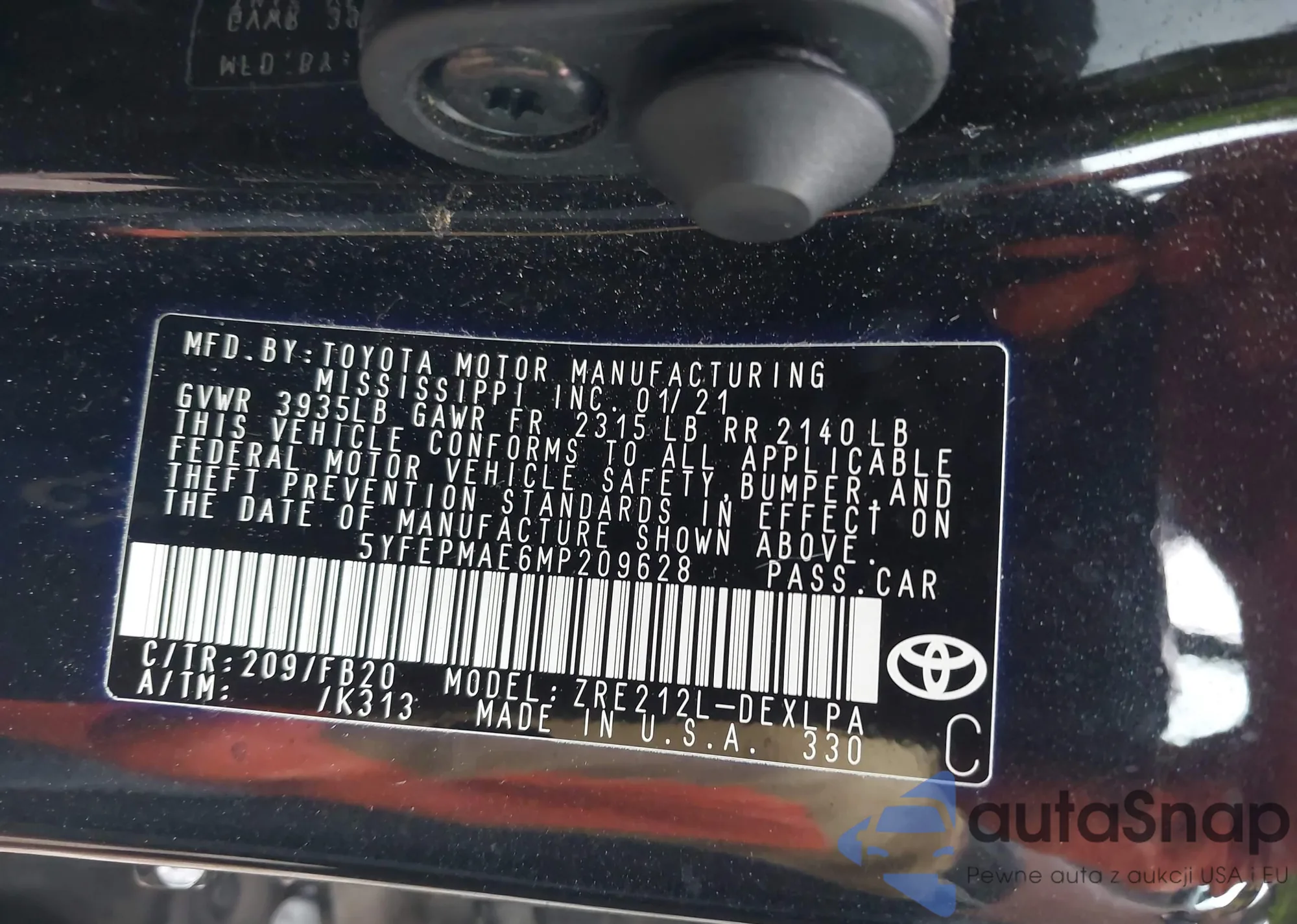 • VIN 5YFEPMAE6MP209628