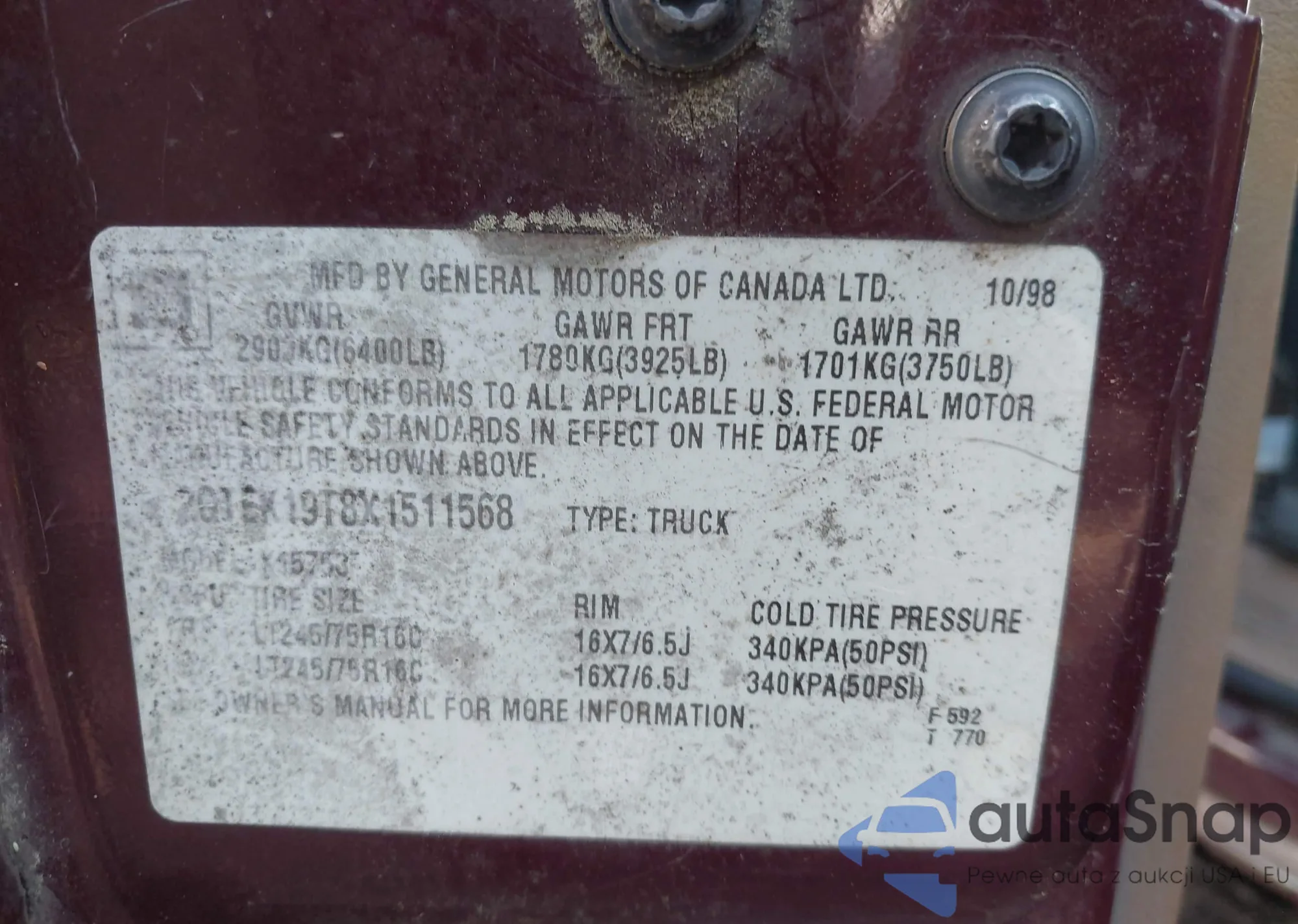 • VIN 2GTEK19T8X1511568
