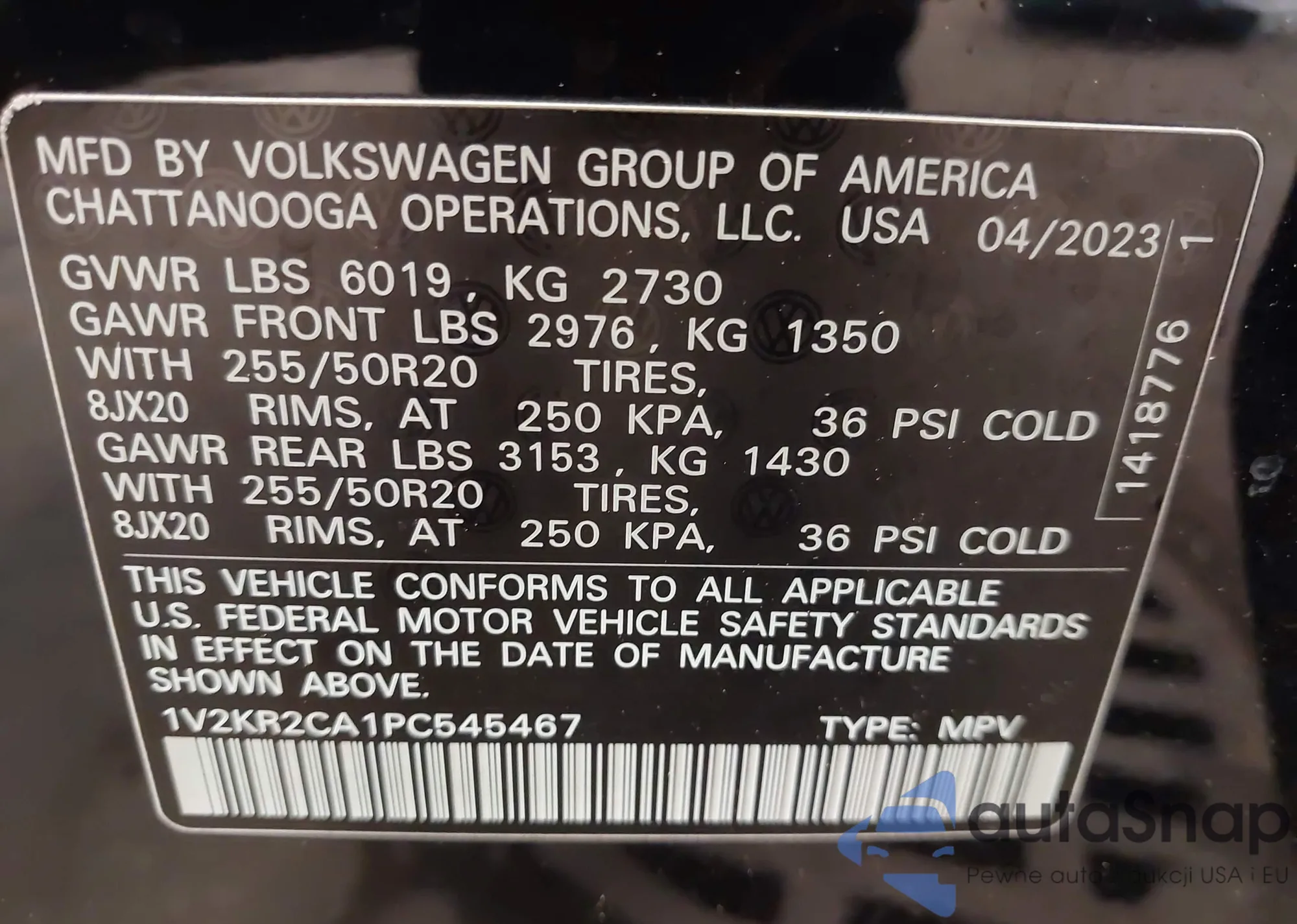• VIN 1V2KR2CA1PC545467