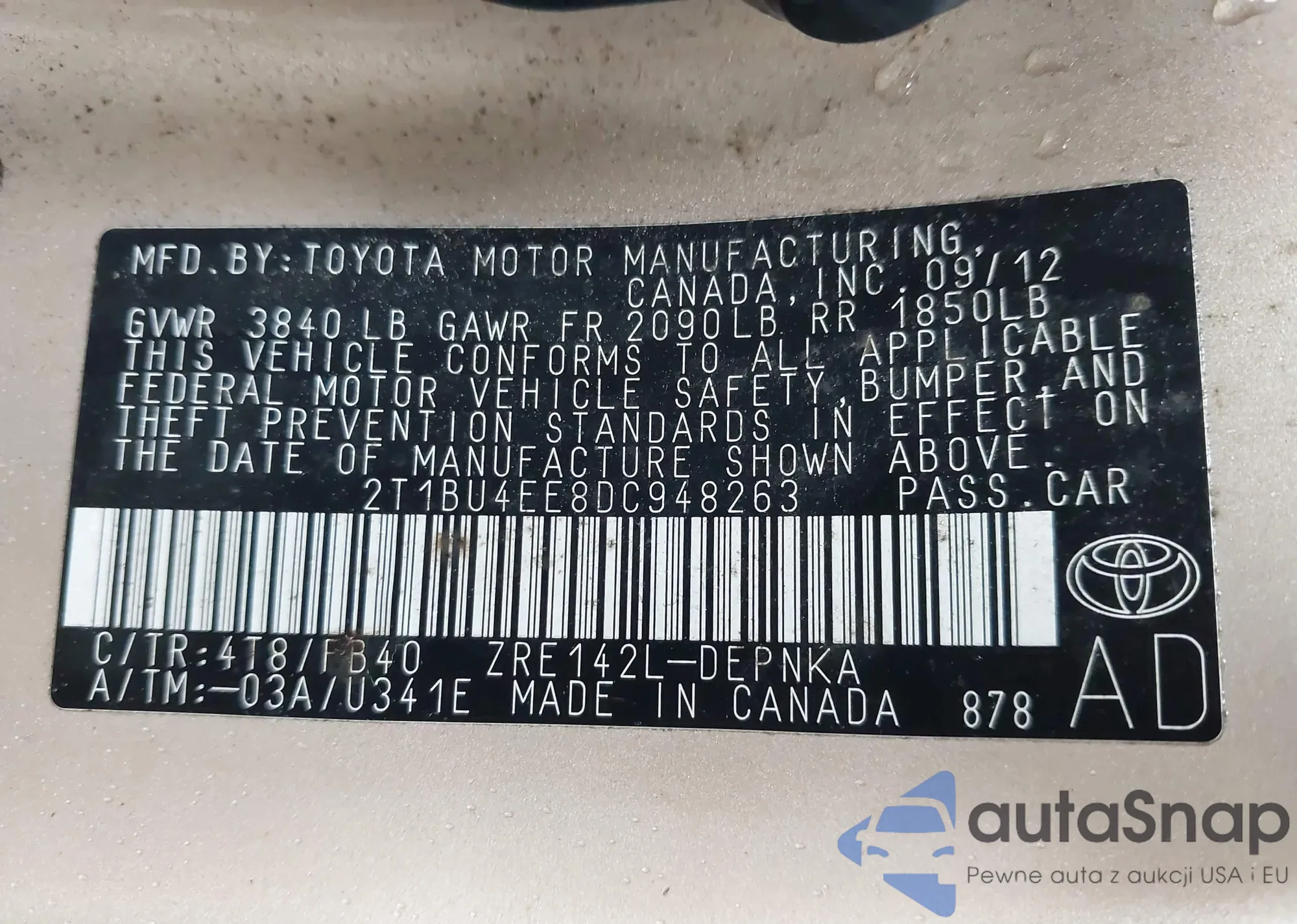 • VIN 2T1BU4EE8DC948263