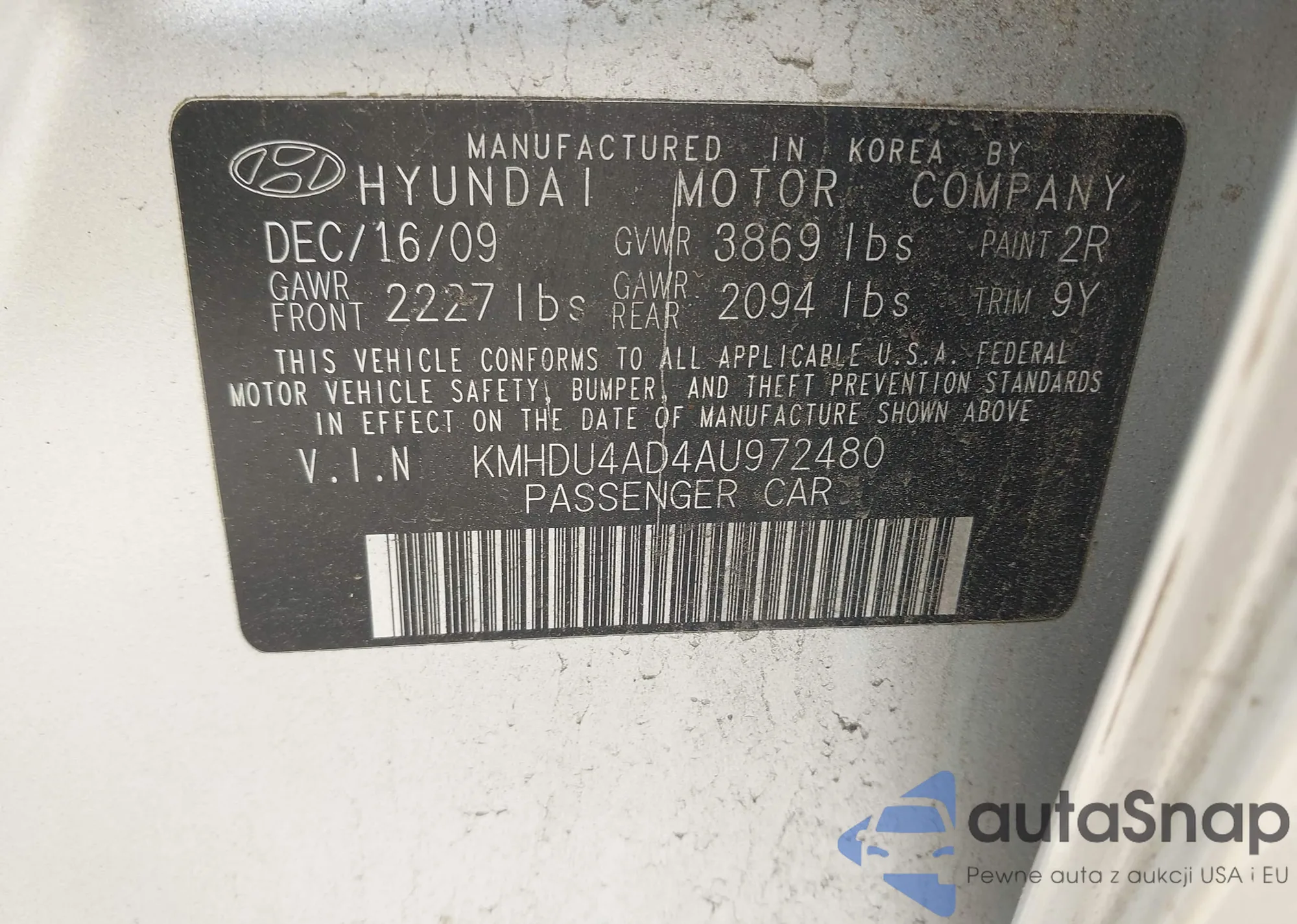 LOT: 42663948 VIN: KMHDU4AD4AU972480