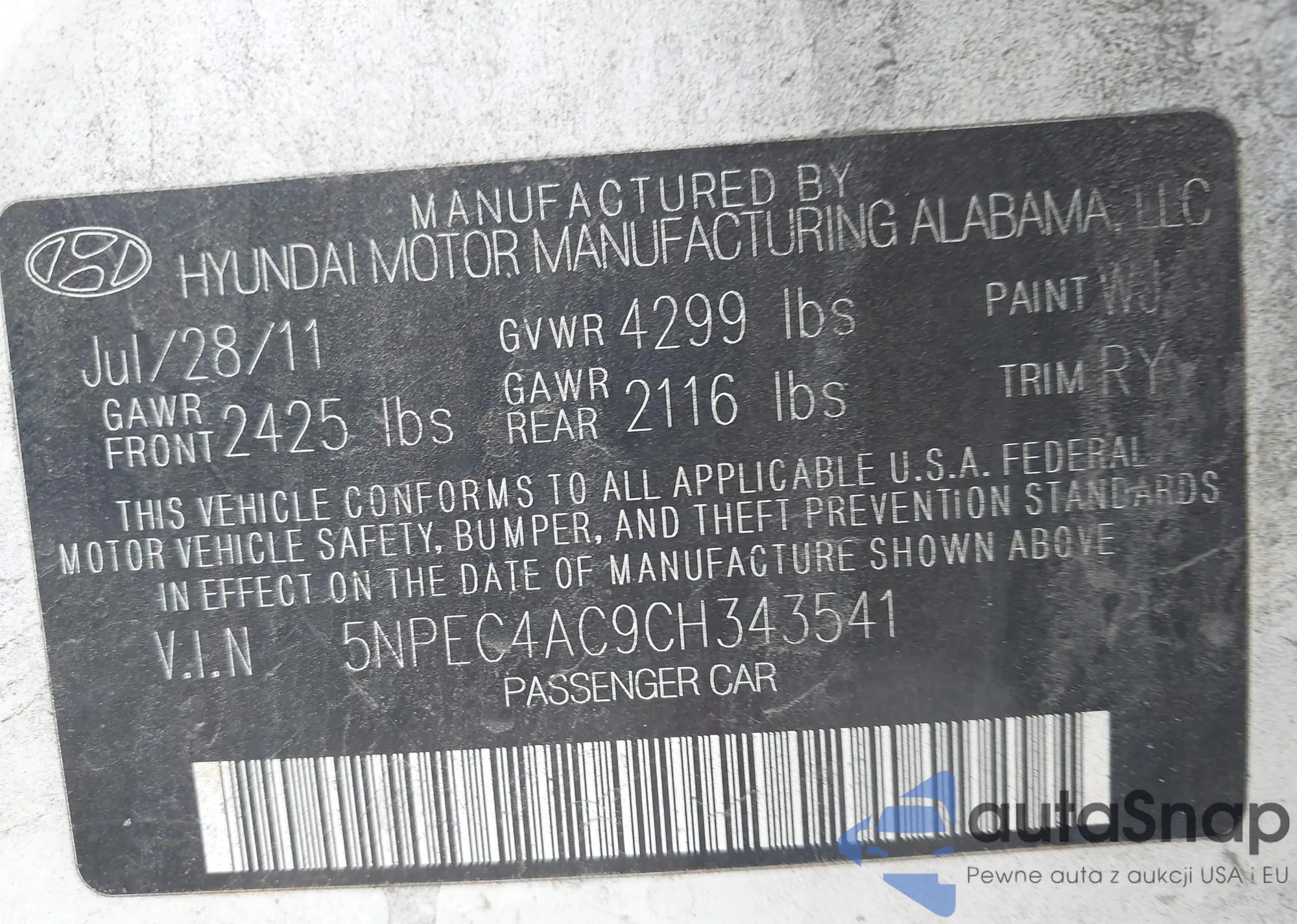 • VIN 5NPEC4AC9CH343541