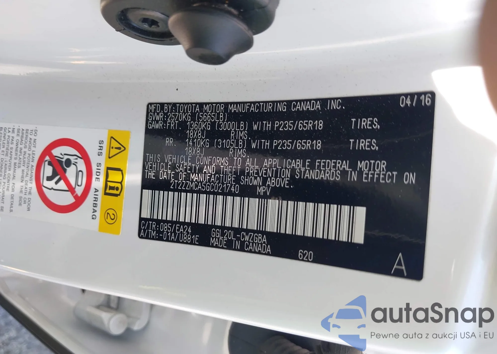 • VIN 2T2ZZMCA5GC021740