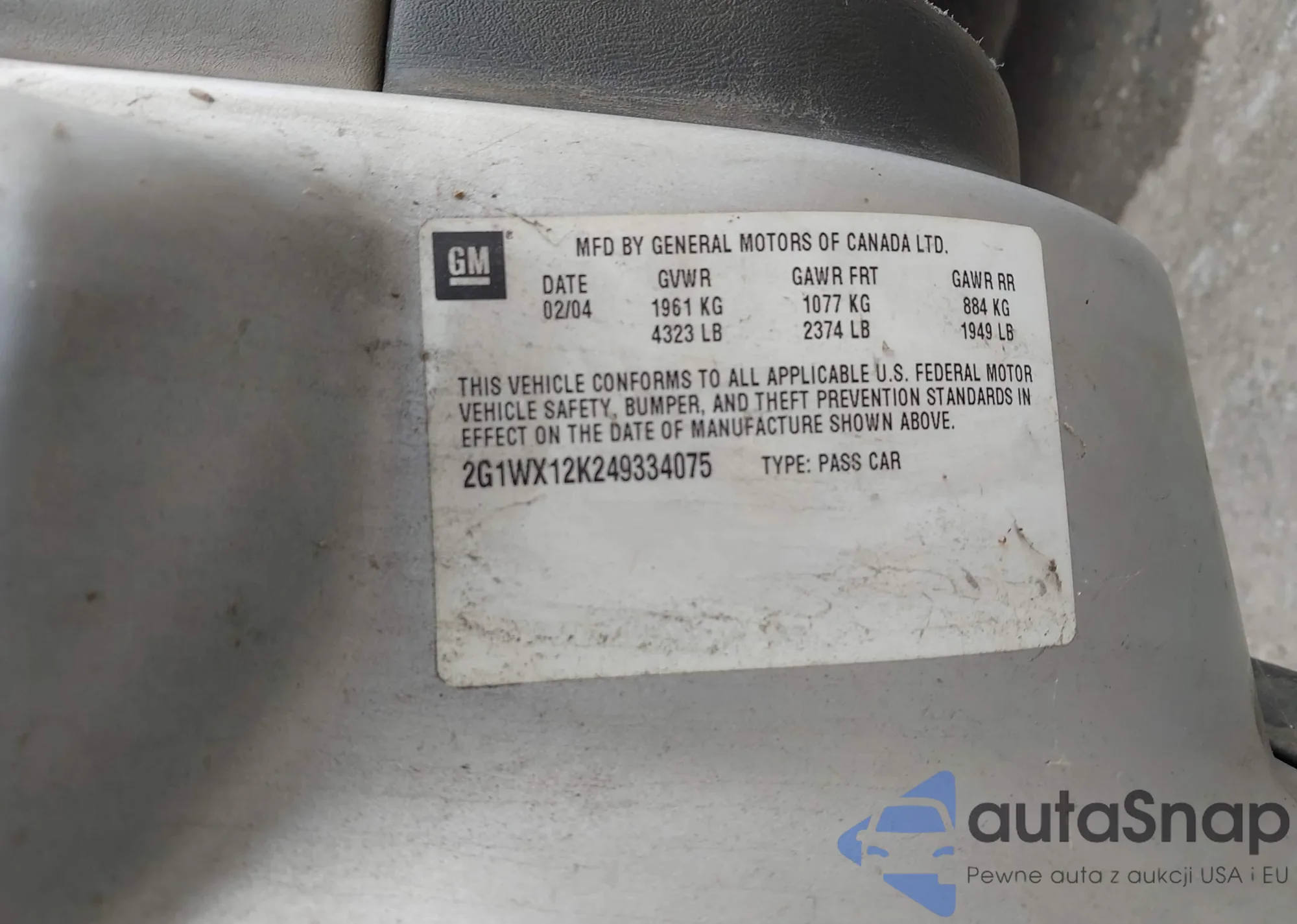 • VIN 2G1WX12K249334075