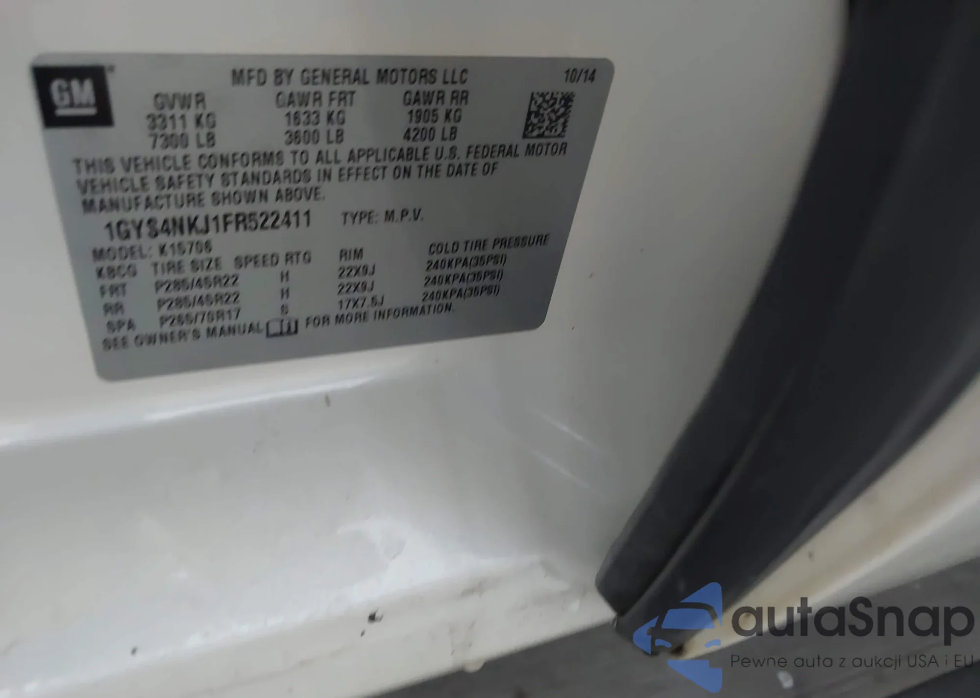 • VIN 1GYS4NKJ1FR522411