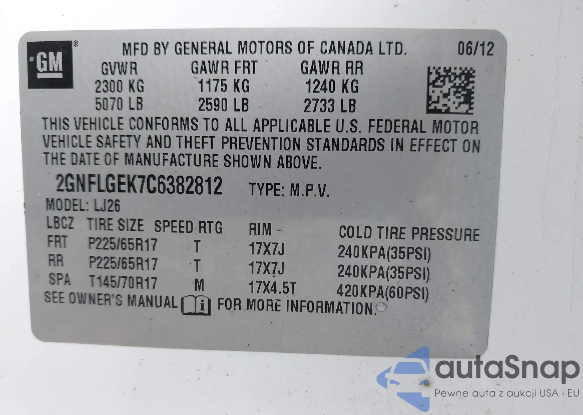 • VIN 2GNFLGEK7C6382812