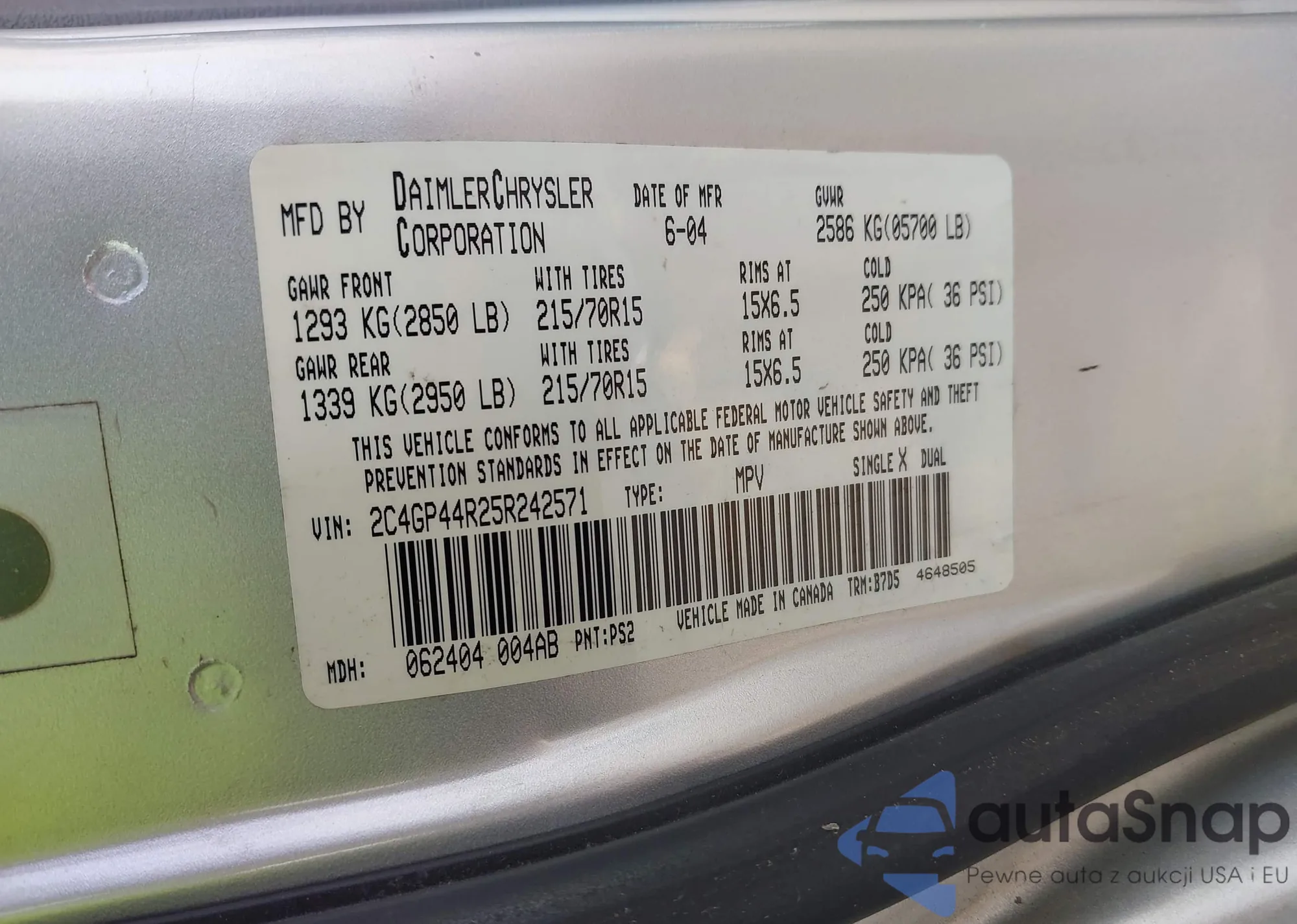 • VIN 2C4GP44R25R242571