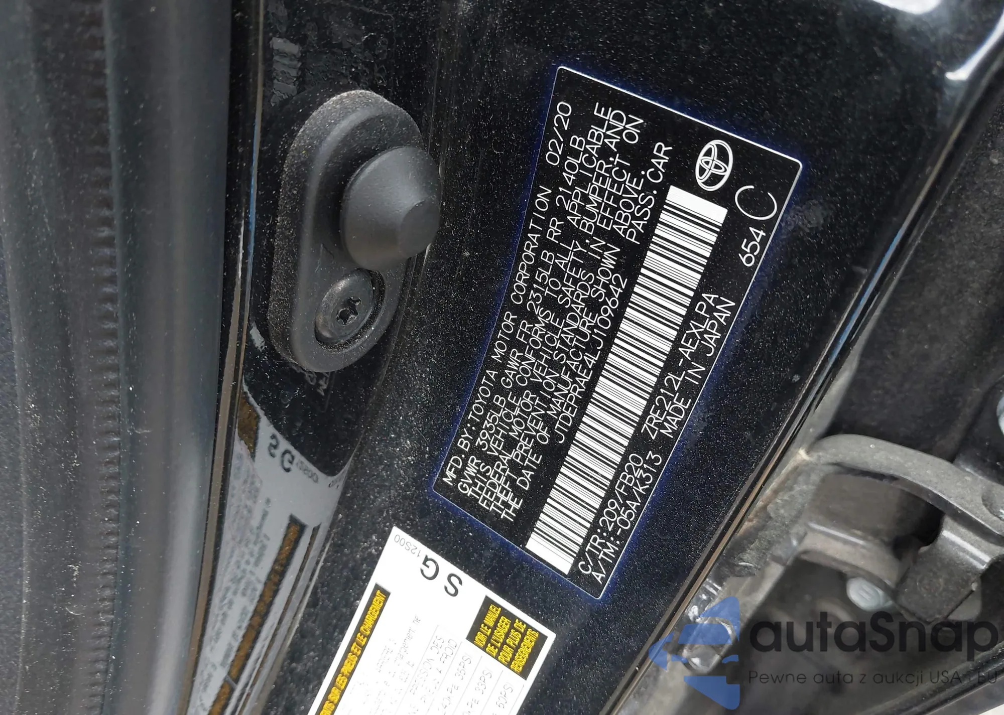 LOT: 41968784 VIN: JTDEPRAE4LJ109642
