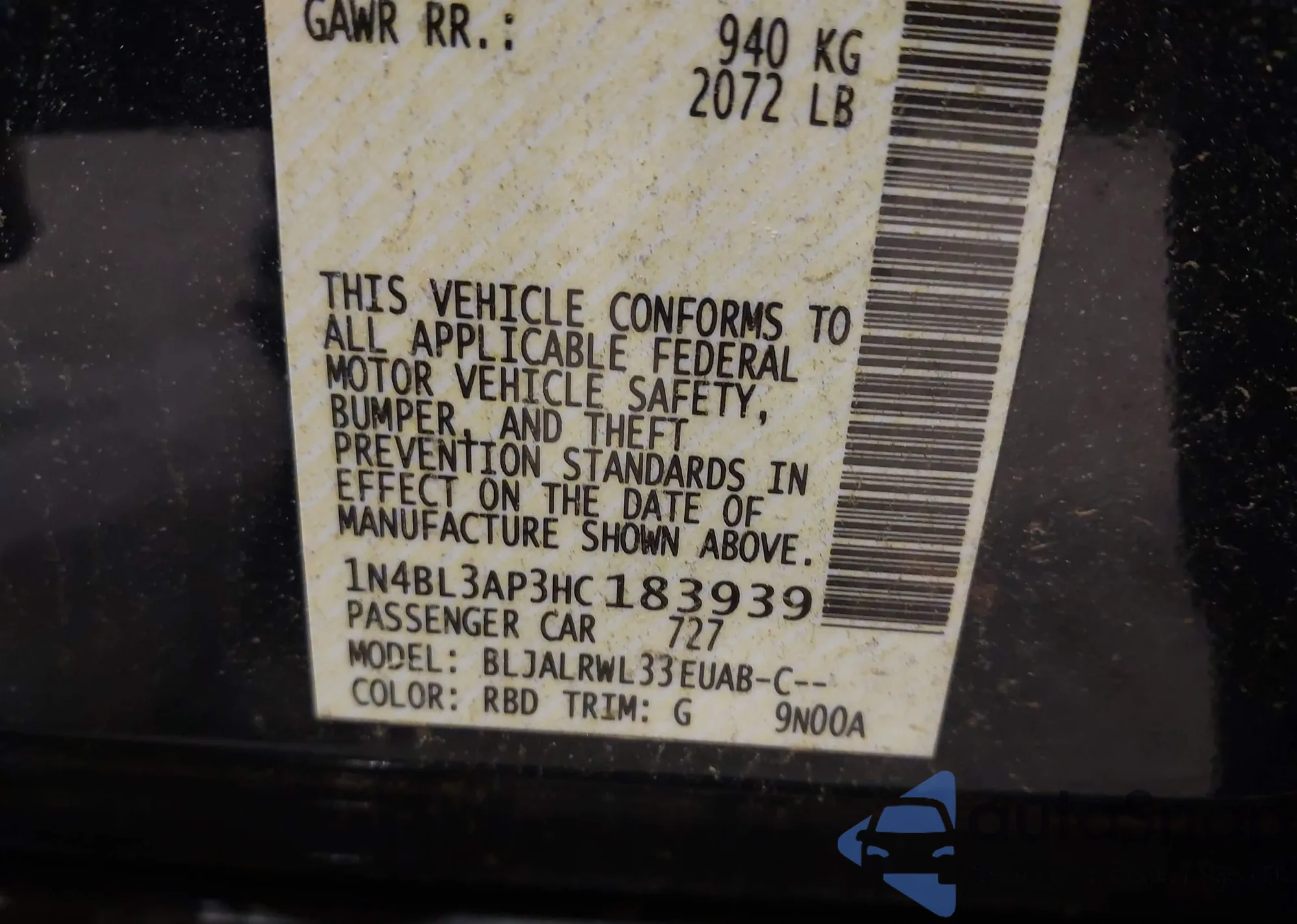 • VIN 1N4BL3AP3HC183939