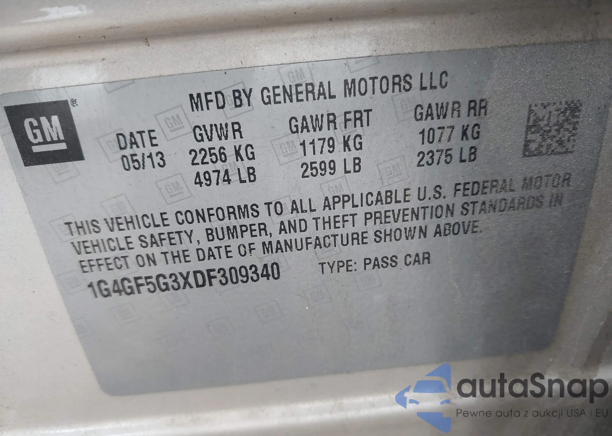 LOT: 42363533 VIN: 1G4GF5G3XDF309340