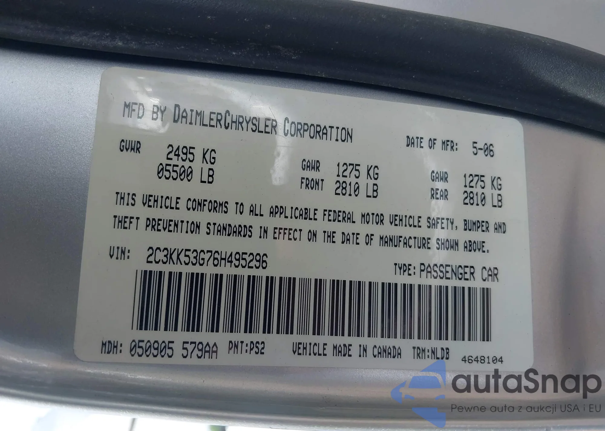 • VIN 2C3KK53G76H495296