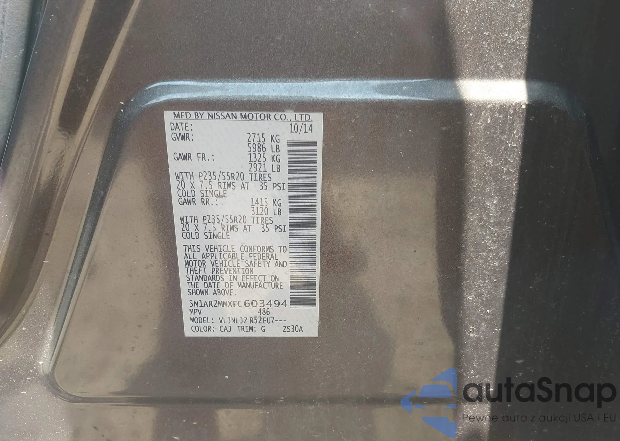 • VIN 3N1AB8BV3PY296026