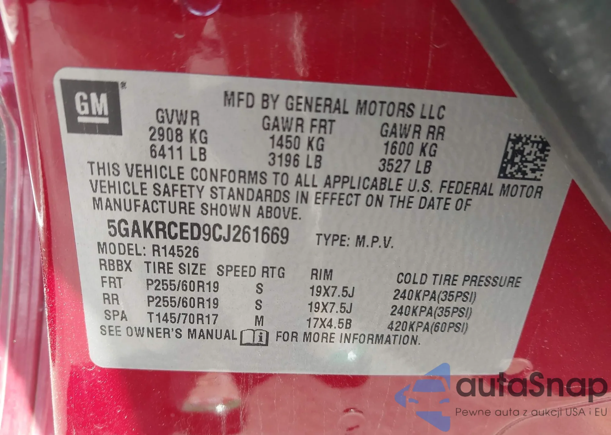 LOT: 42657133 VIN: 5GAKRCED9CJ261669