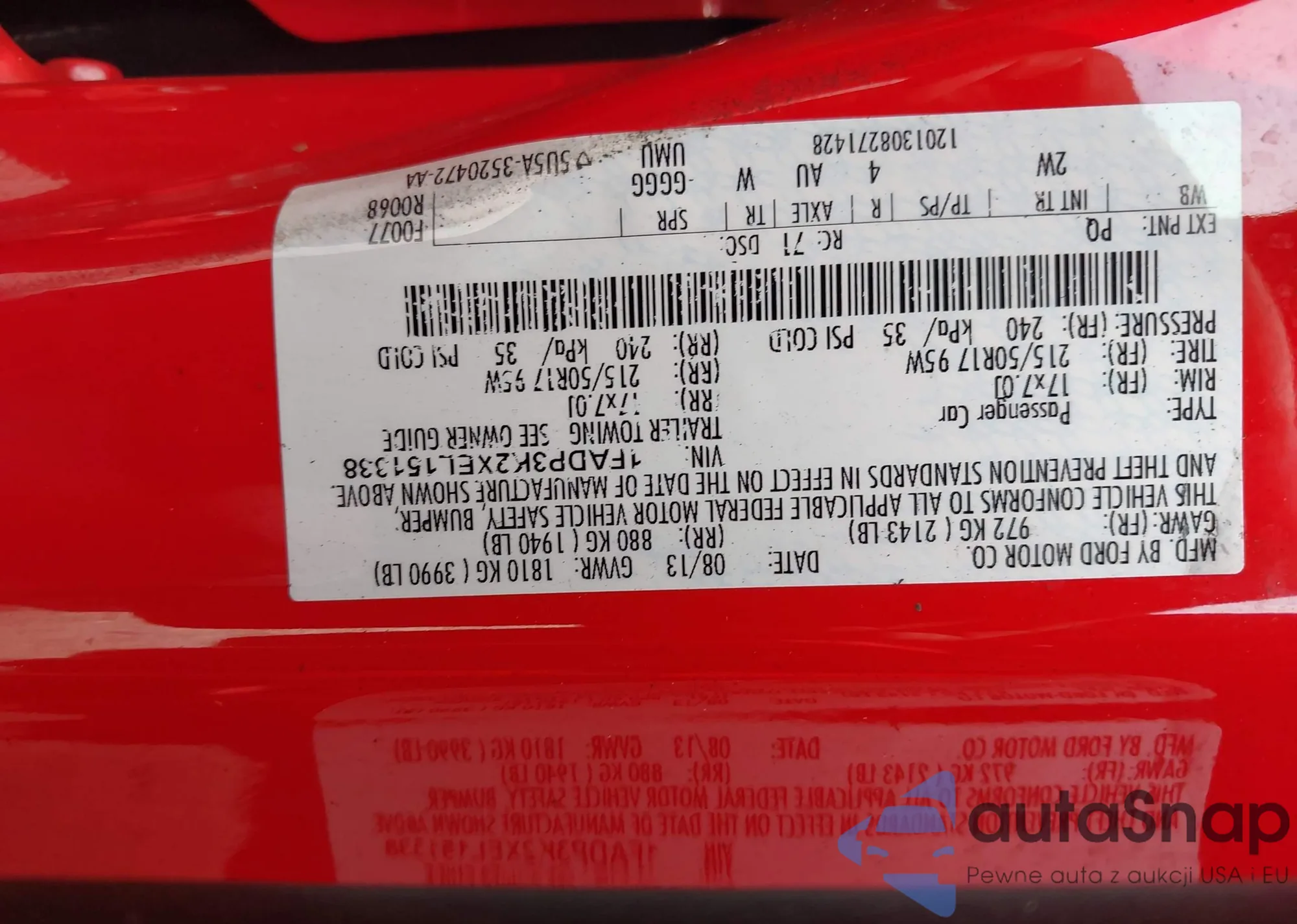 • VIN 3FAHP08147R115616
