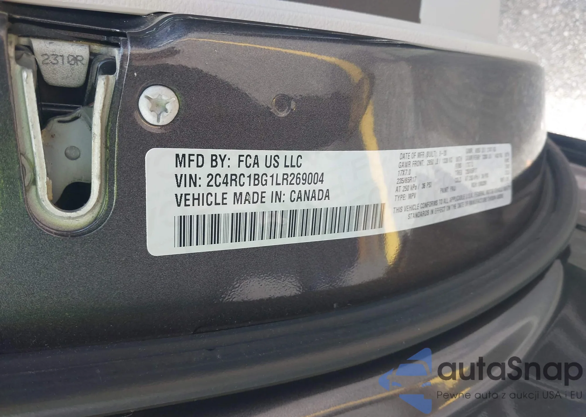 • VIN 2C4RC1BG1LR269004