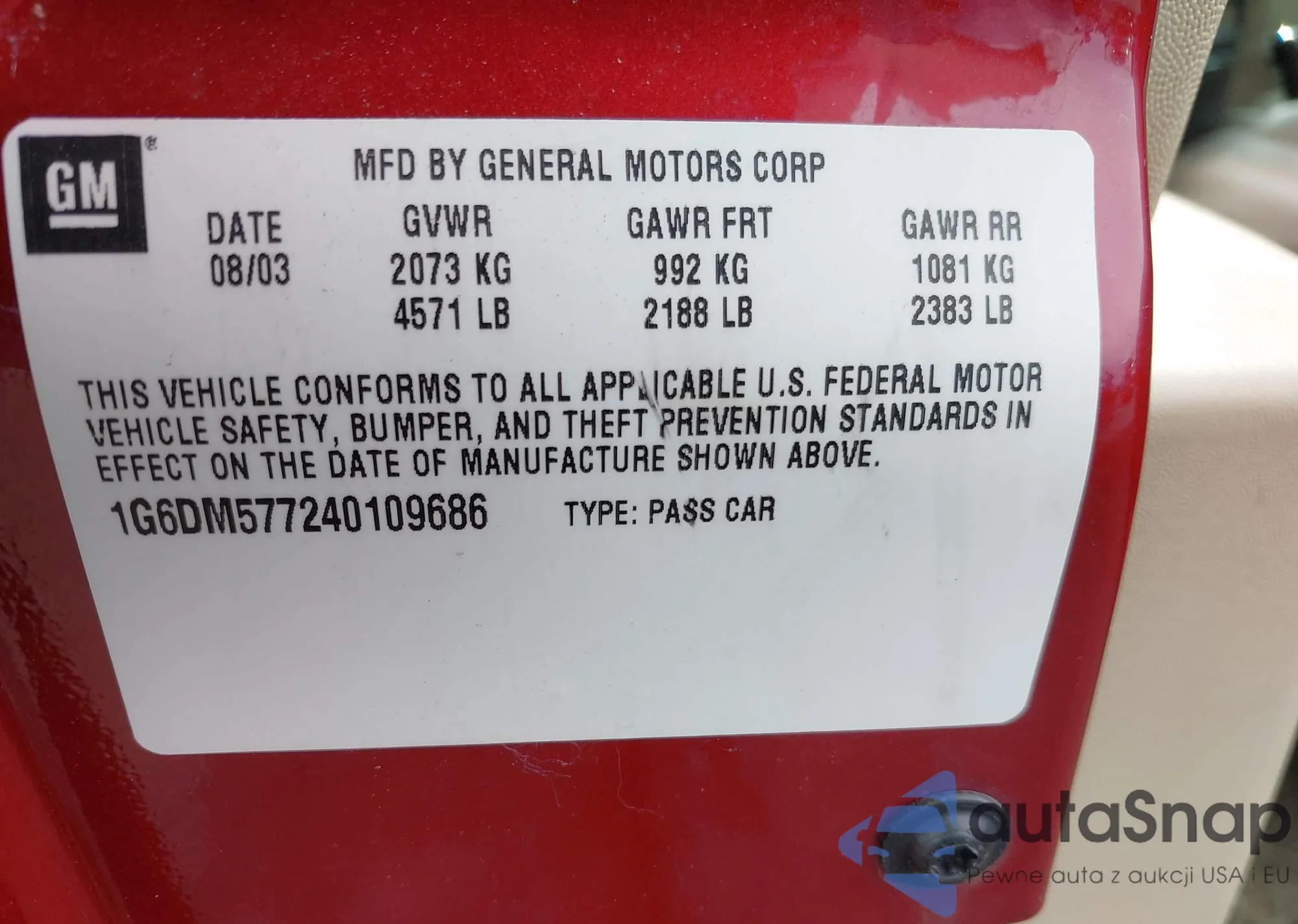 LOT: 42374267 VIN: 1G8ZN82751Z243750
